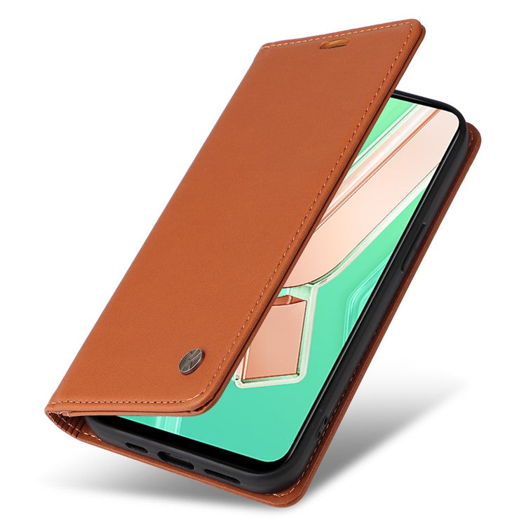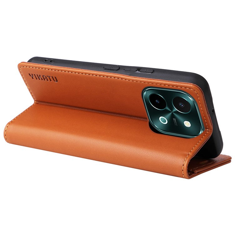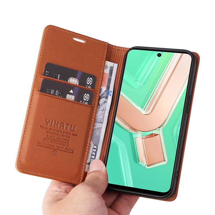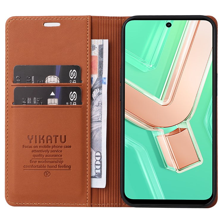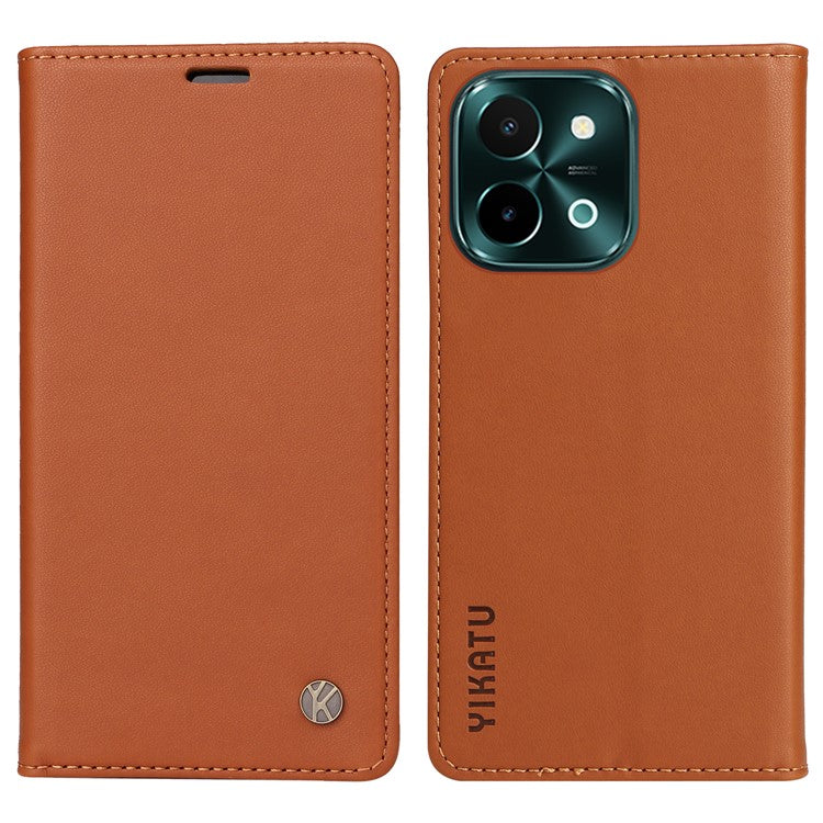 YIKATU YK-001 For vivo Y28 4G Case Card Slot Stand Leather Phone Cover Strong Magnetic - Brown