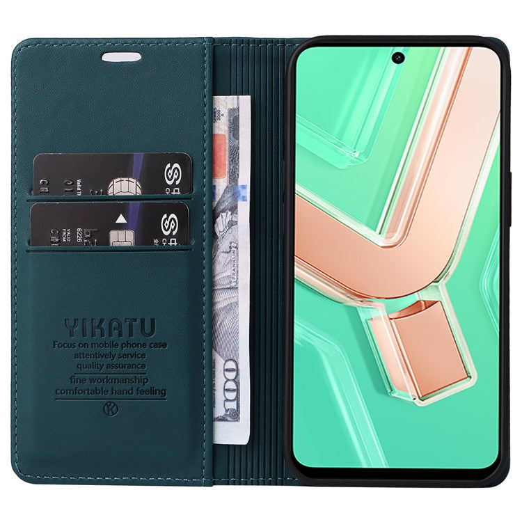 YIKATU YK-001 For vivo Y28 4G Case Card Slot Stand Leather Phone Cover Strong Magnetic - Green