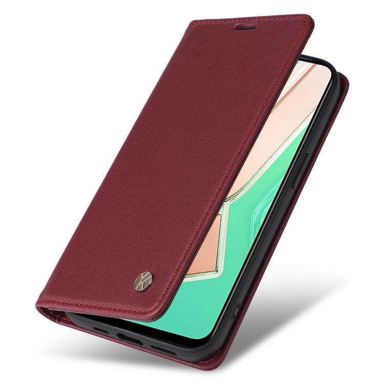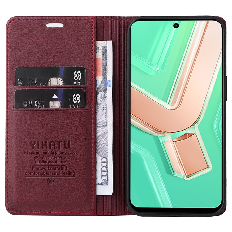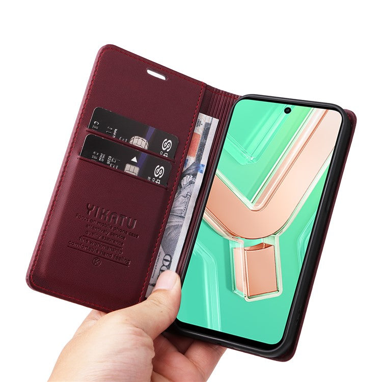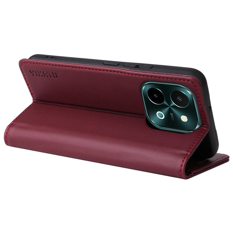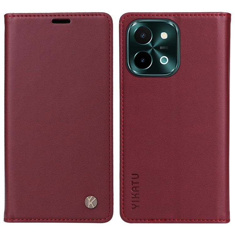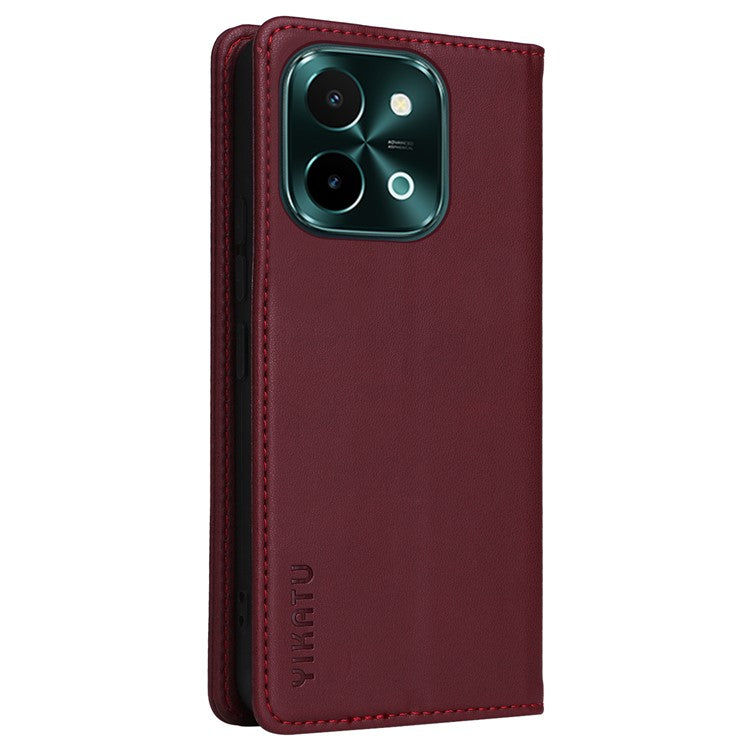 YIKATU YK-001 For vivo Y28 4G Case Card Slot Stand Leather Phone Cover Strong Magnetic - Wine Red