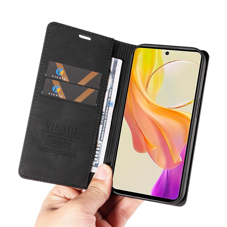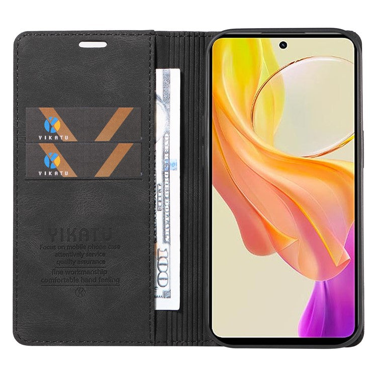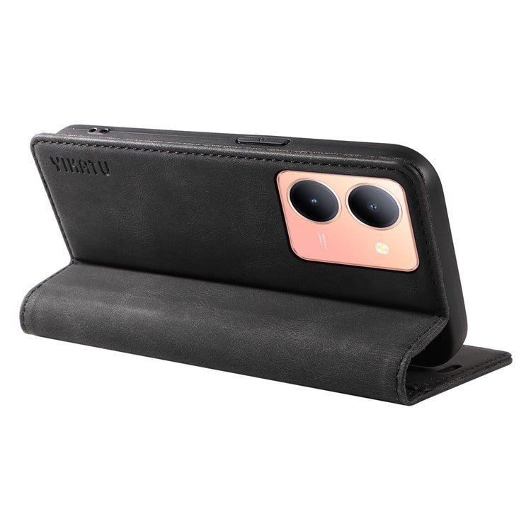 YIKATU YK-004 For vivo Y36 5G (Global) / Y78 5G (China) Fully Wrapped Leather Cover Skin-touch Stand Shell Wallet Phone Case - Black