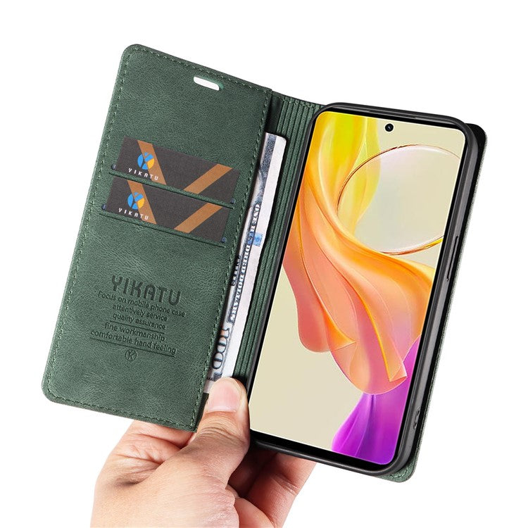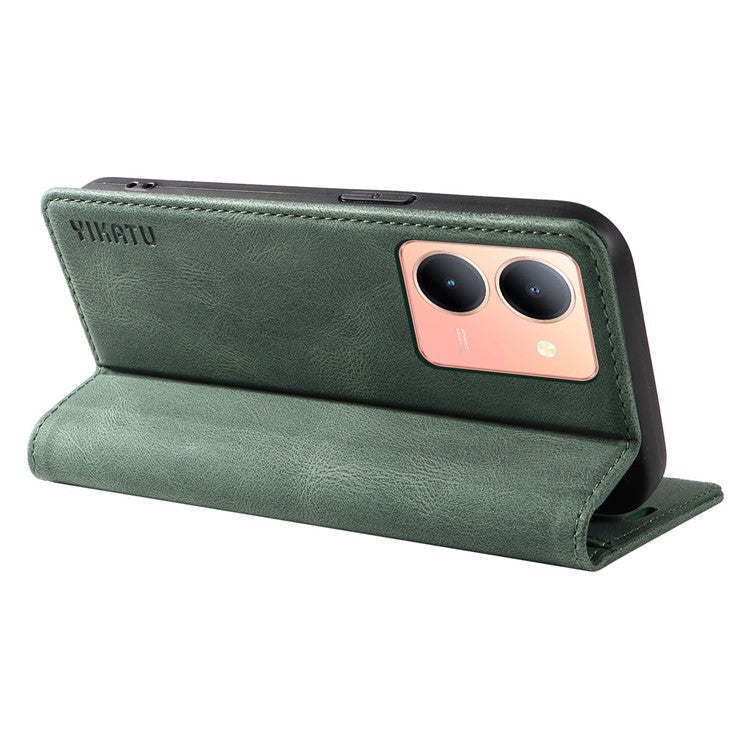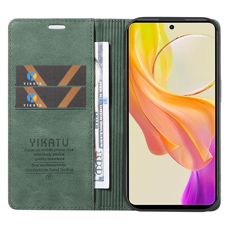 YIKATU YK-004 For vivo Y36 5G (Global) / Y78 5G (China) Fully Wrapped Leather Cover Skin-touch Stand Shell Wallet Phone Case - Green