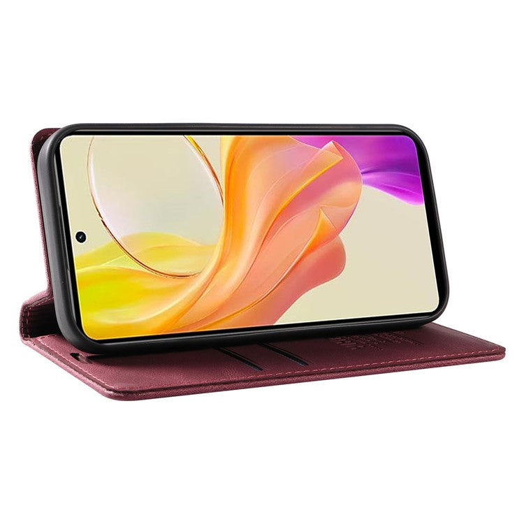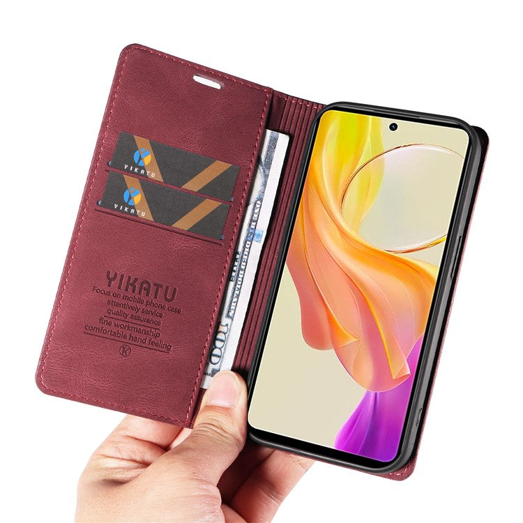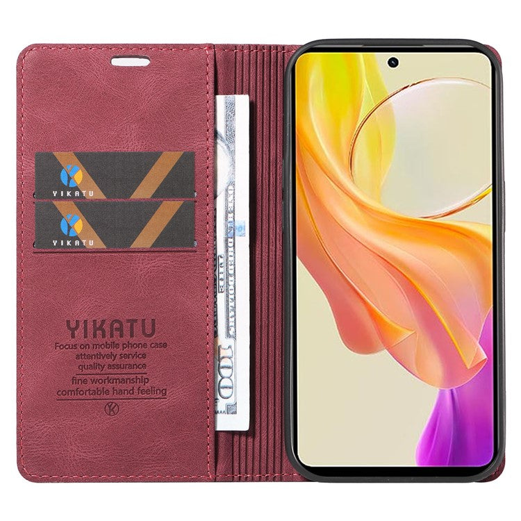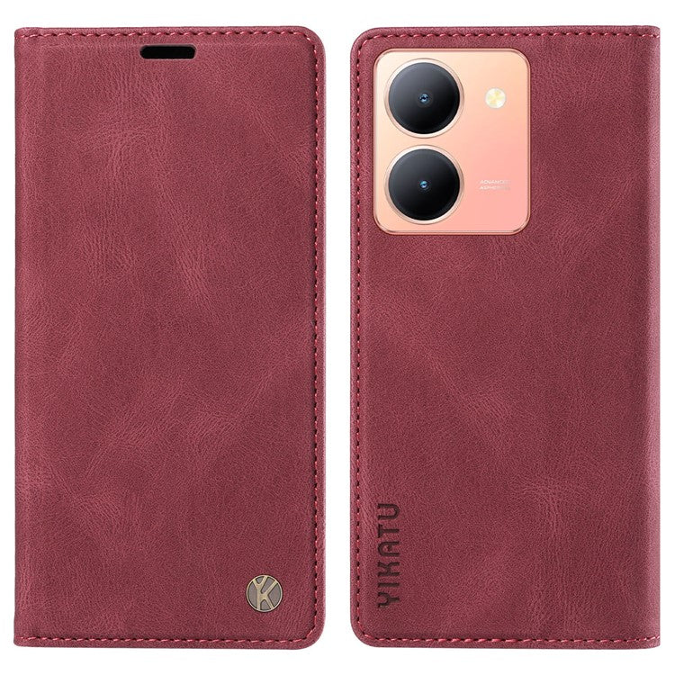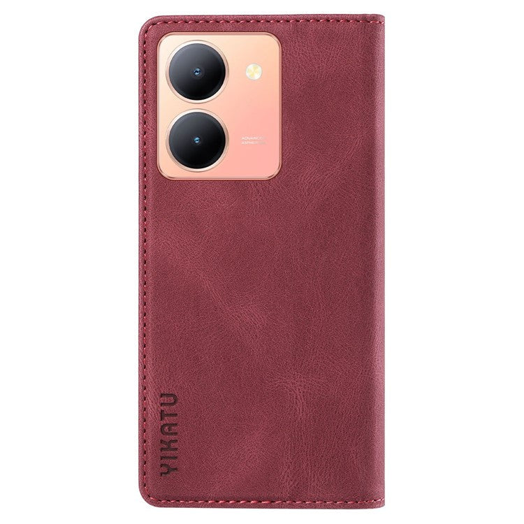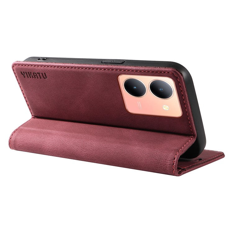 YIKATU YK-004 For vivo Y36 5G (Global) / Y78 5G (China) Fully Wrapped Leather Cover Skin-touch Stand Shell Wallet Phone Case - Wine Red
