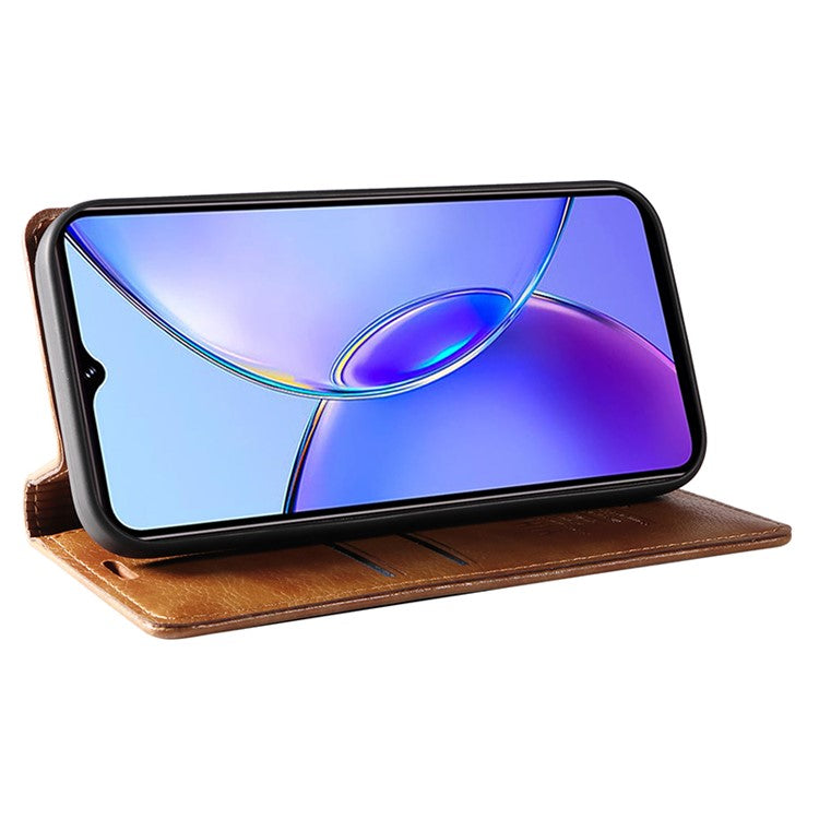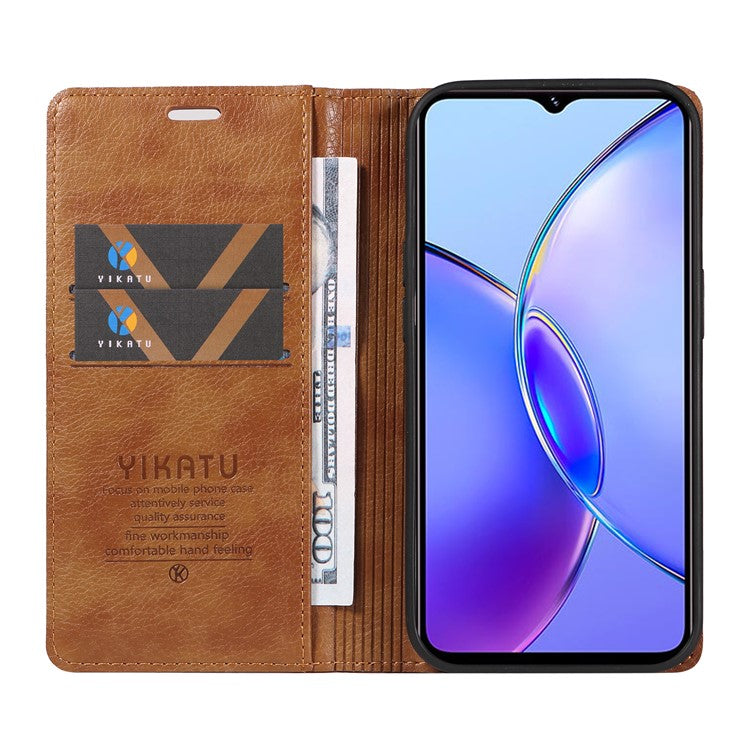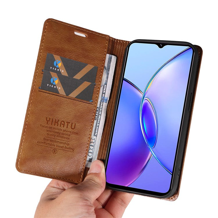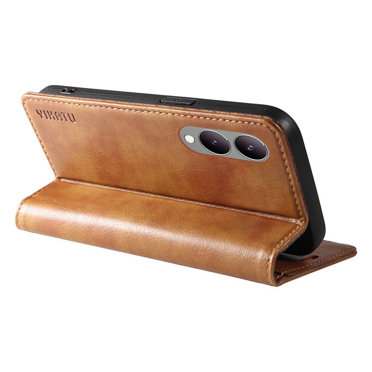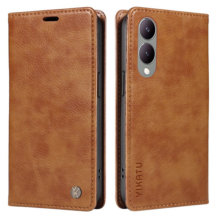 YIKATU YK-006 For vivo Y17s 4G Cell Phone Case PU Leather+TPU Litchi Texture Anti-drop Wallet Cover - Brown