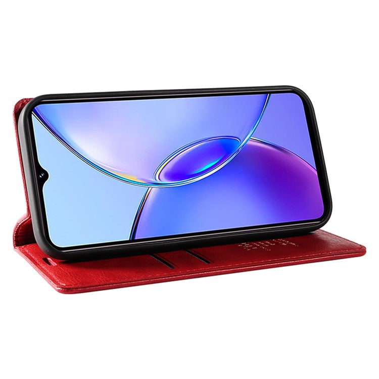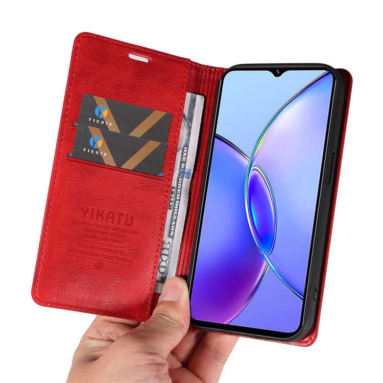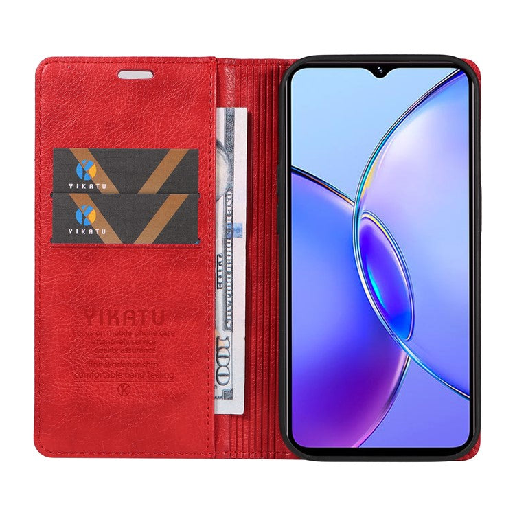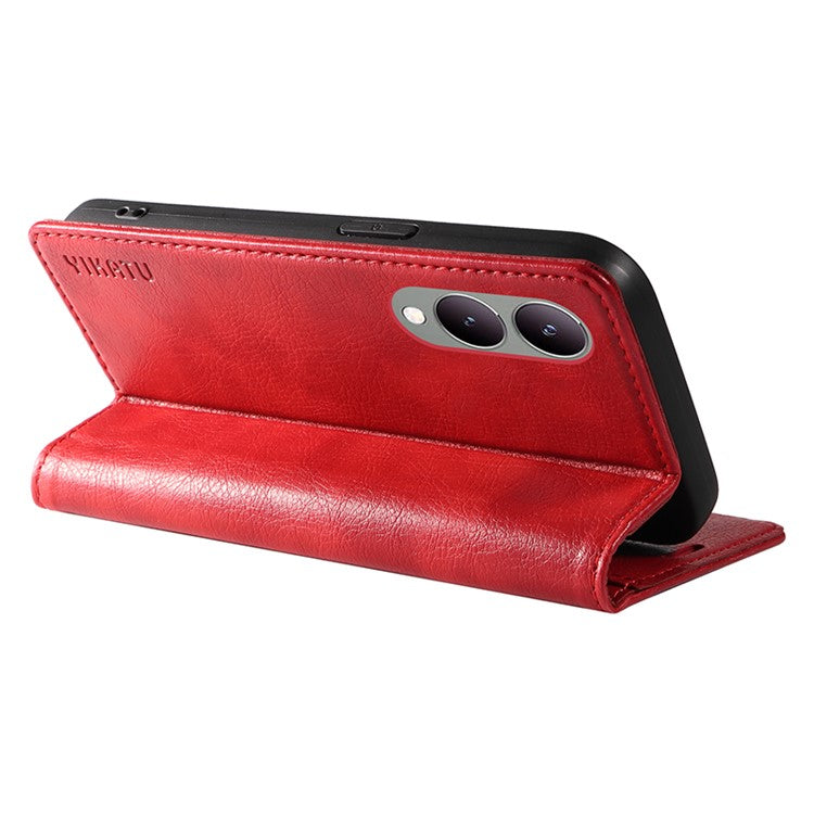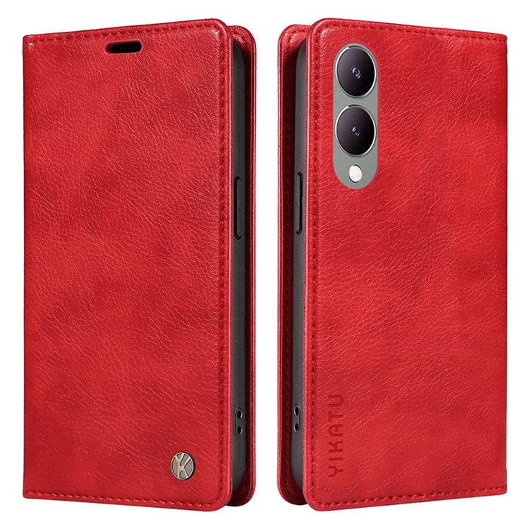 YIKATU YK-006 For vivo Y17s 4G Cell Phone Case PU Leather+TPU Litchi Texture Anti-drop Wallet Cover - Red