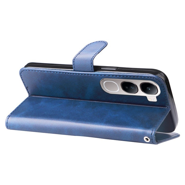 Zipper Wallet Case for vivo Y300 5G / Y200 5G / V40 Lite (Indonesia) 5G / 4G Calf Texture Leather Phone Cover - Blue