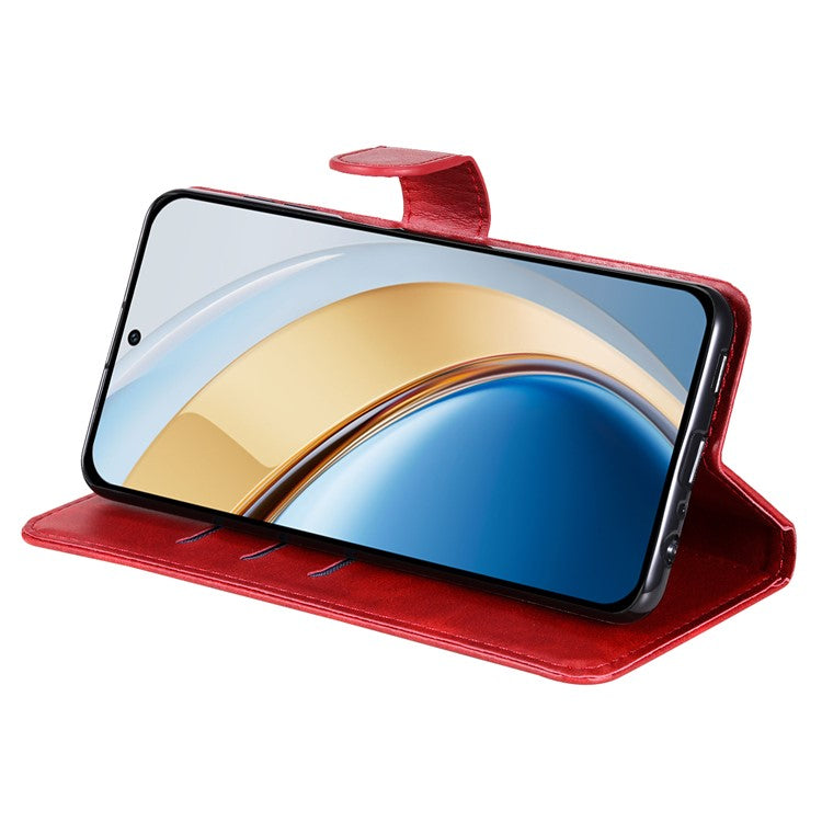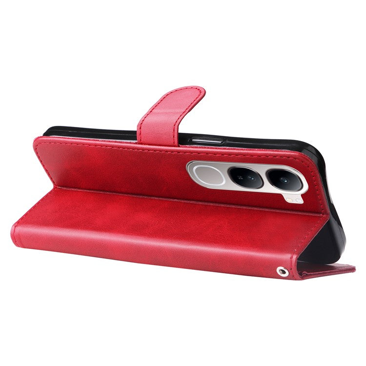 Zipper Wallet Case for vivo Y300 5G / Y200 5G / V40 Lite (Indonesia) 5G / 4G Calf Texture Leather Phone Cover - Red