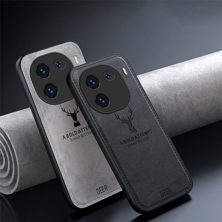 For vivo iQOO 12 5G Cloth Texture Case Deer Impressions Phone Cover - Grey