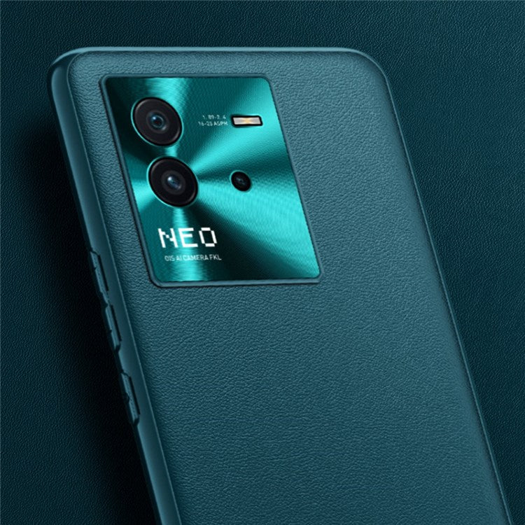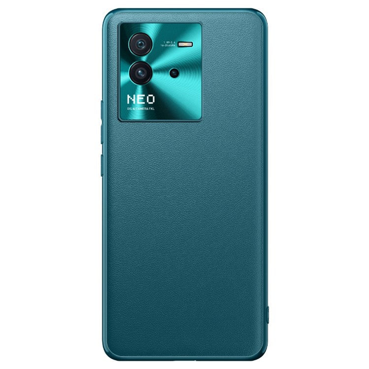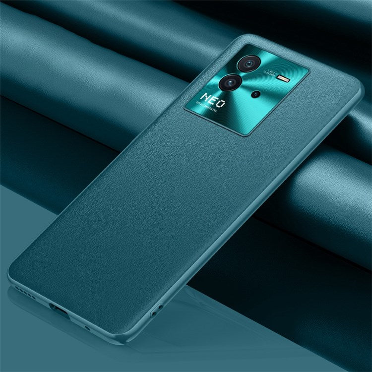 For vivo iQOO Neo6 Metal Lens Cover Impact Resistant Mobile Phone Case Textured PU Leather Coated TPU Shell - Blue