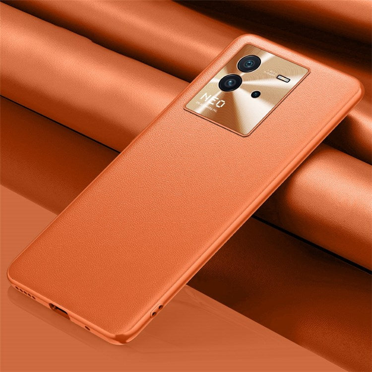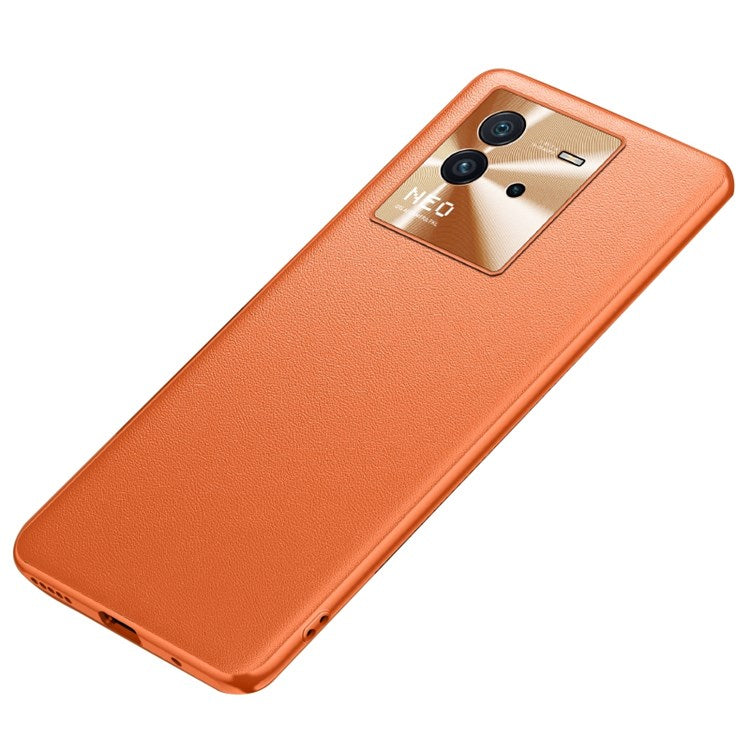 For vivo iQOO Neo6 Metal Lens Cover Impact Resistant Mobile Phone Case Textured PU Leather Coated TPU Shell - Orange