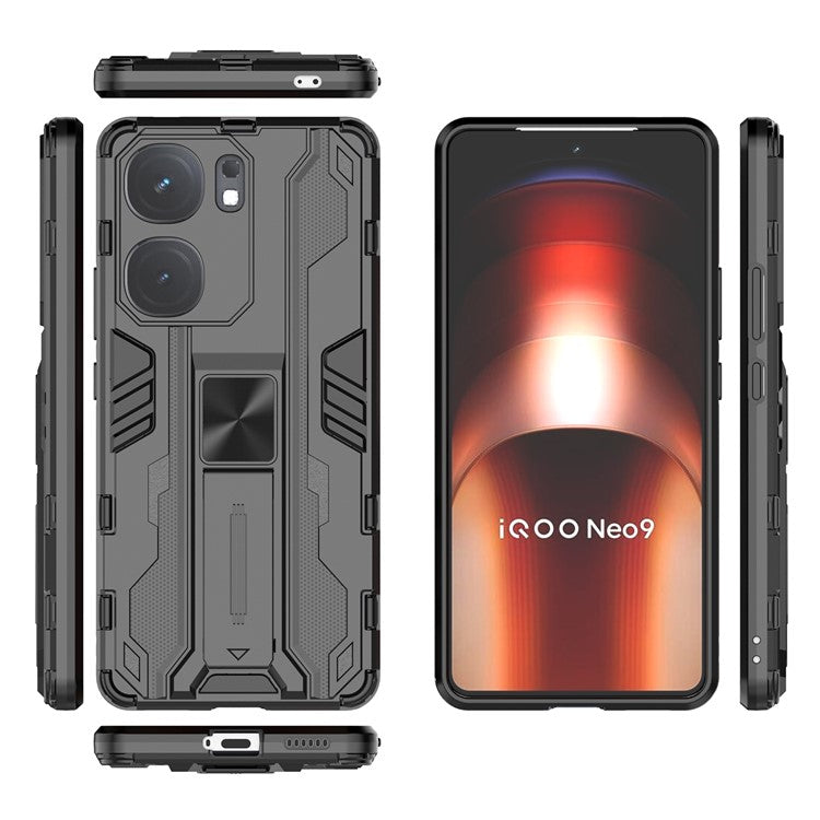 For vivo iQOO Neo9 5G Case Scratch-proof PC + TPU Kickstand Cell Phone Cover - Black