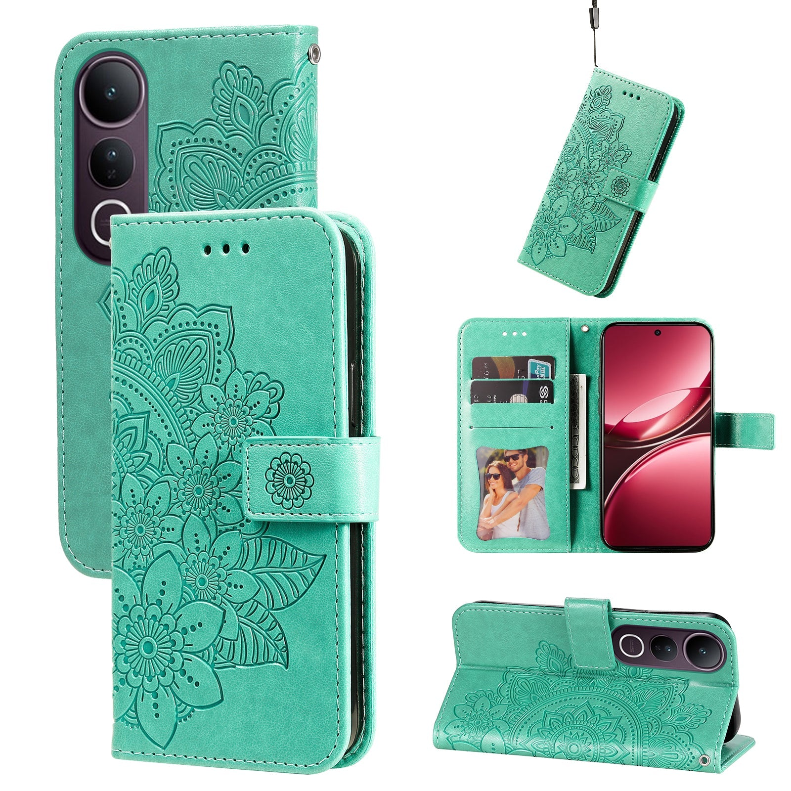 For vivo V50 Lite 4G Case Floral Pattern PU Leather Wallet Stand Phone Cover - Green