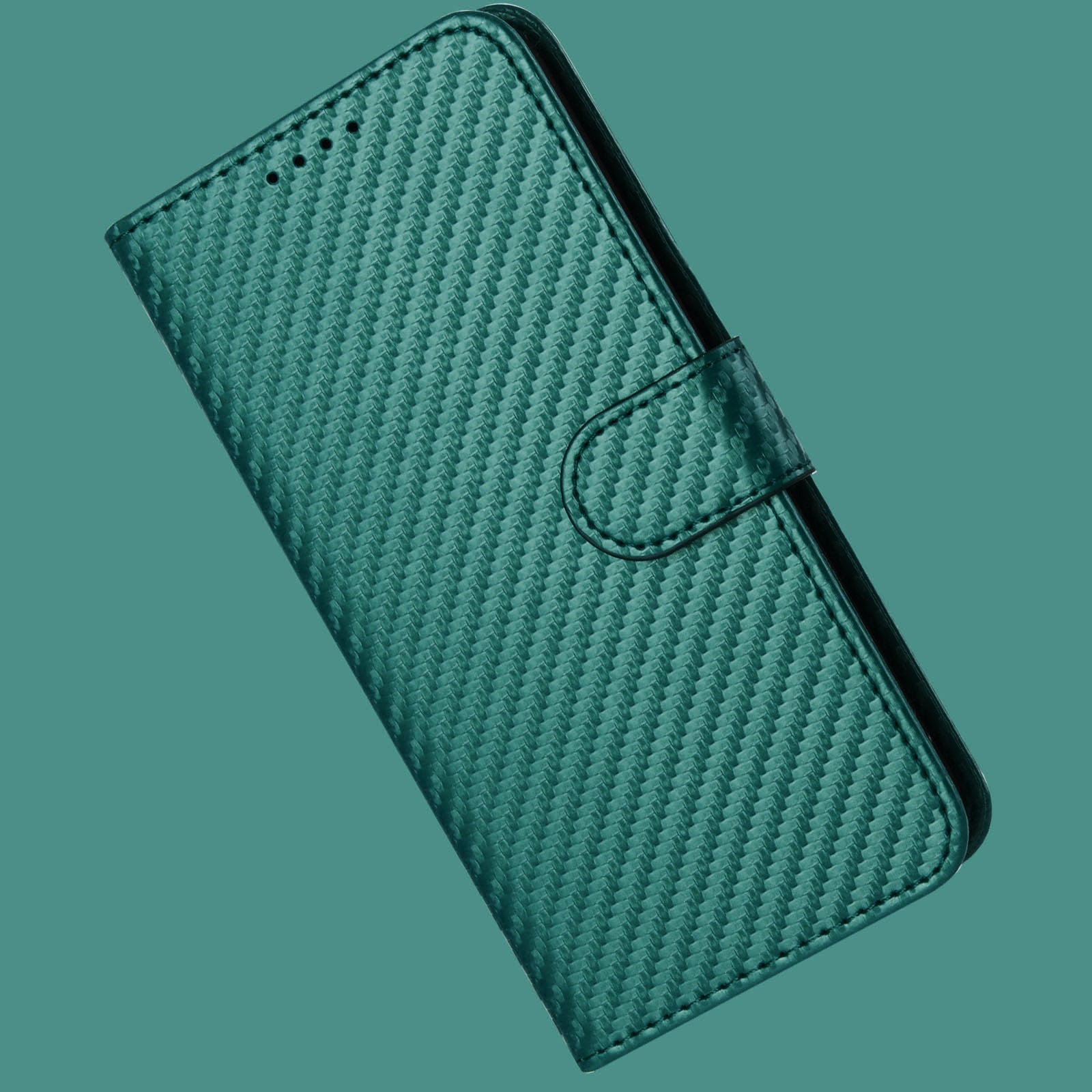 For vivo V50 Lite 5G Wallet Case with Strap Carbon Fiber Texture Leather Mobile Cover - Blackish Green