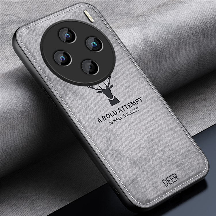 For vivo X200 5G Case Deer Pattern Cloth Texture PU Leather Hybrid Phone Cover - Grey