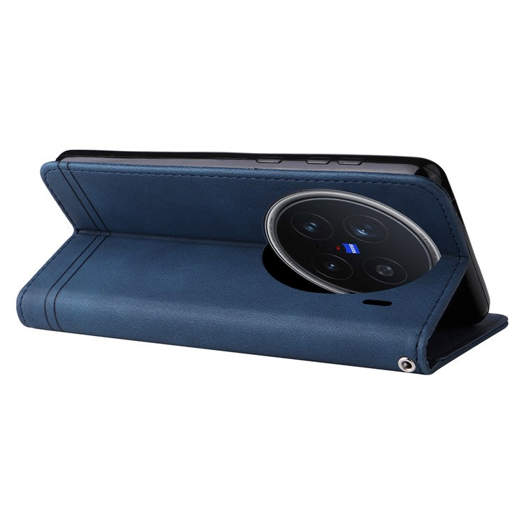 For vivo X200 Pro 5G Wallet Case Skin Touch Leather Phone Cover Tree Pattern Hardware - Blue