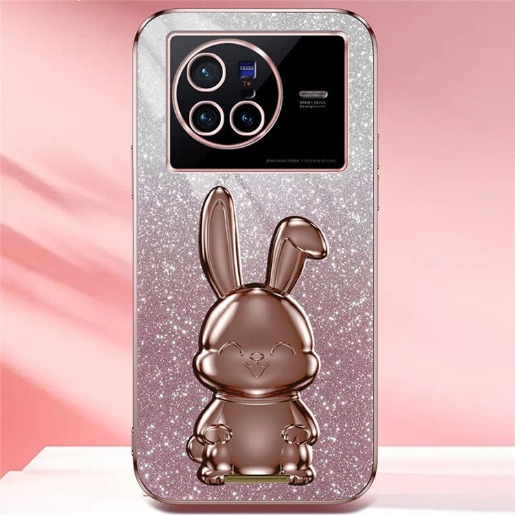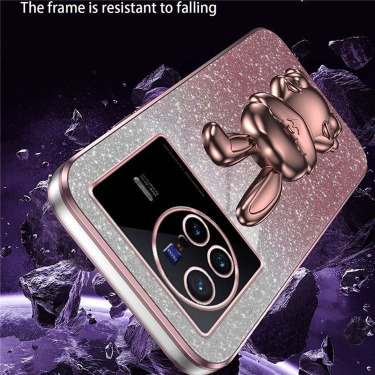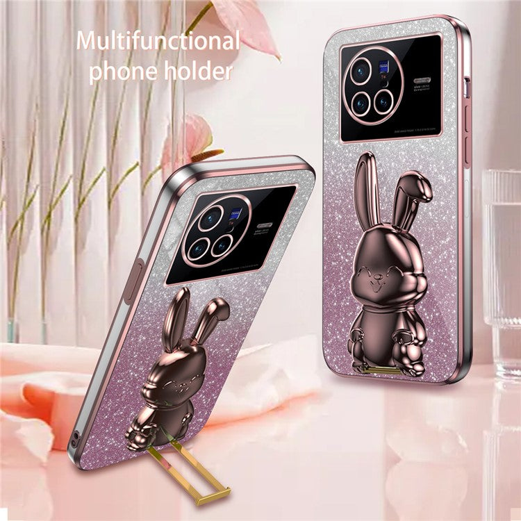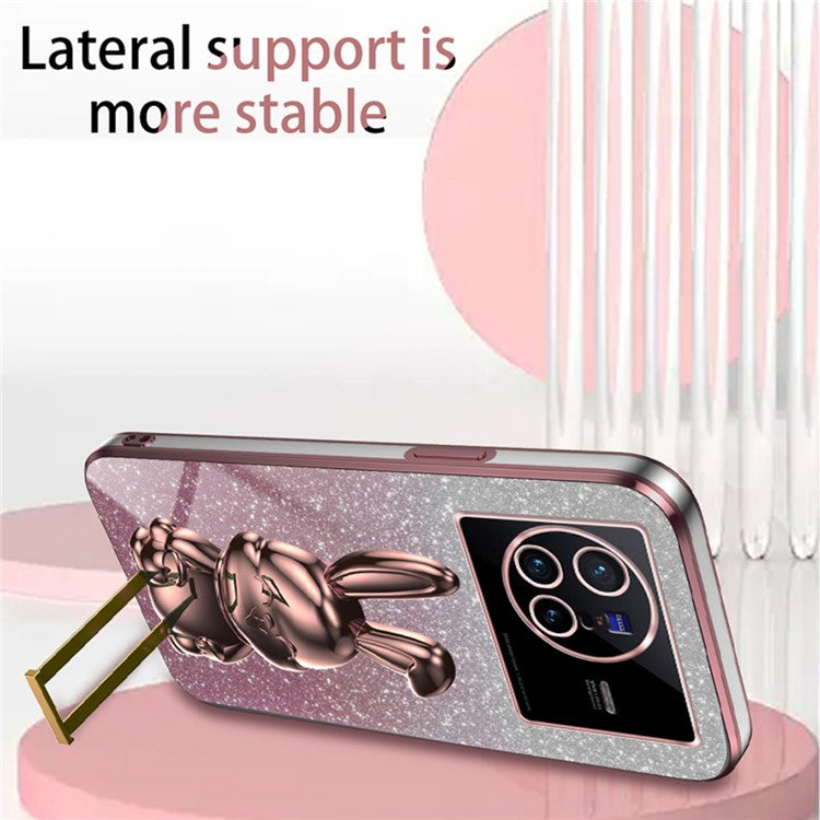 For vivo X80 5G Case Glitter Powder PC+TPU Phone Cover with Pull-out Kickstand - Pink
