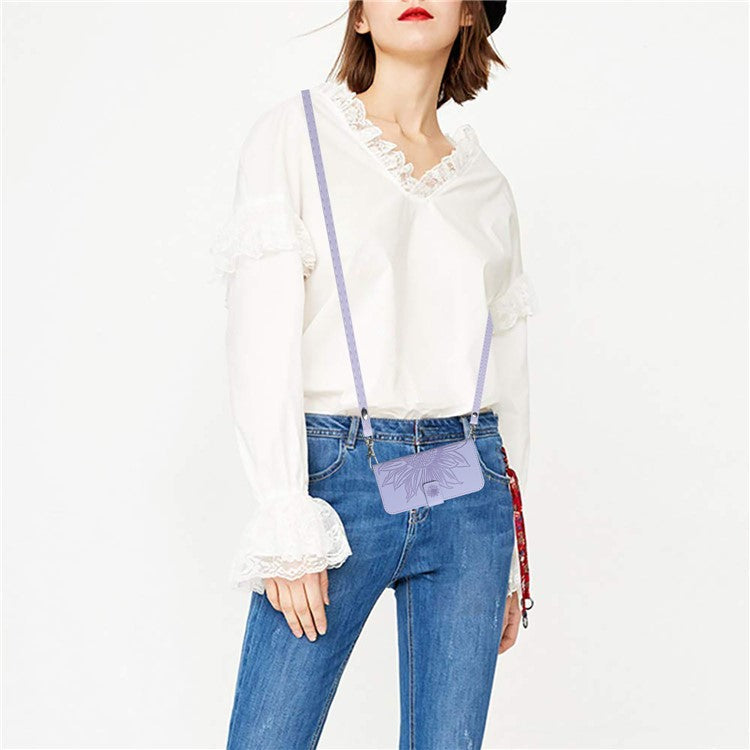 For vivo X80 Lite 5G / V25 5G Skin-touch Imprinted Sunflower Phone Cover PU Leather Wallet Stand Anti-shock Smartphone Case with Shoulder Strap - Light Purple