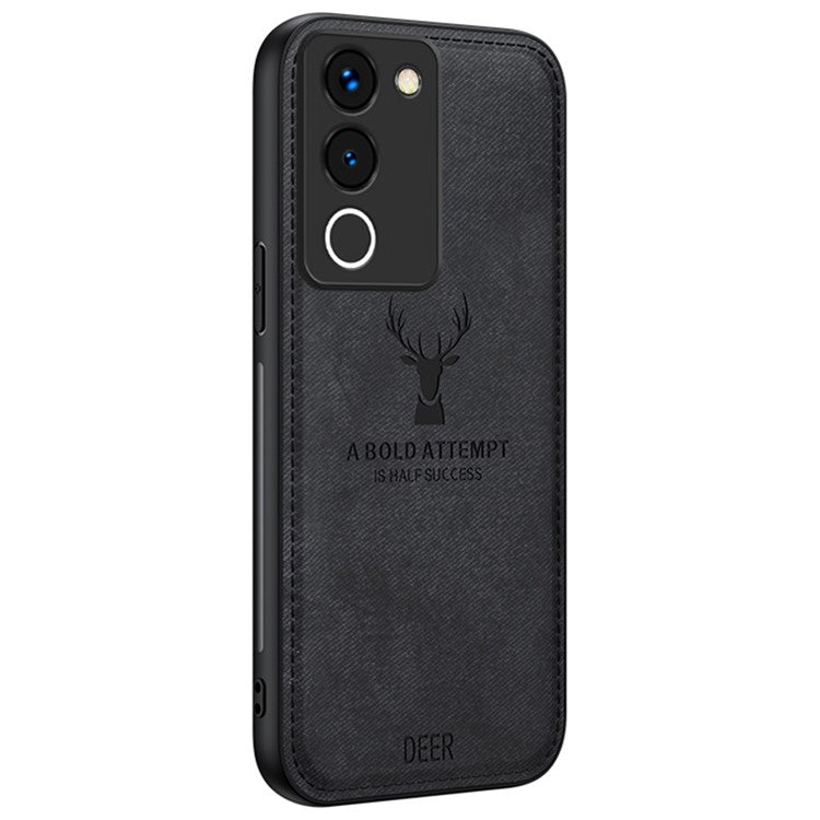 For vivo Y200 (India) 5G Modern Deer Imprinted Case TPU+PC+PU Leather Smartphone Cover - Black