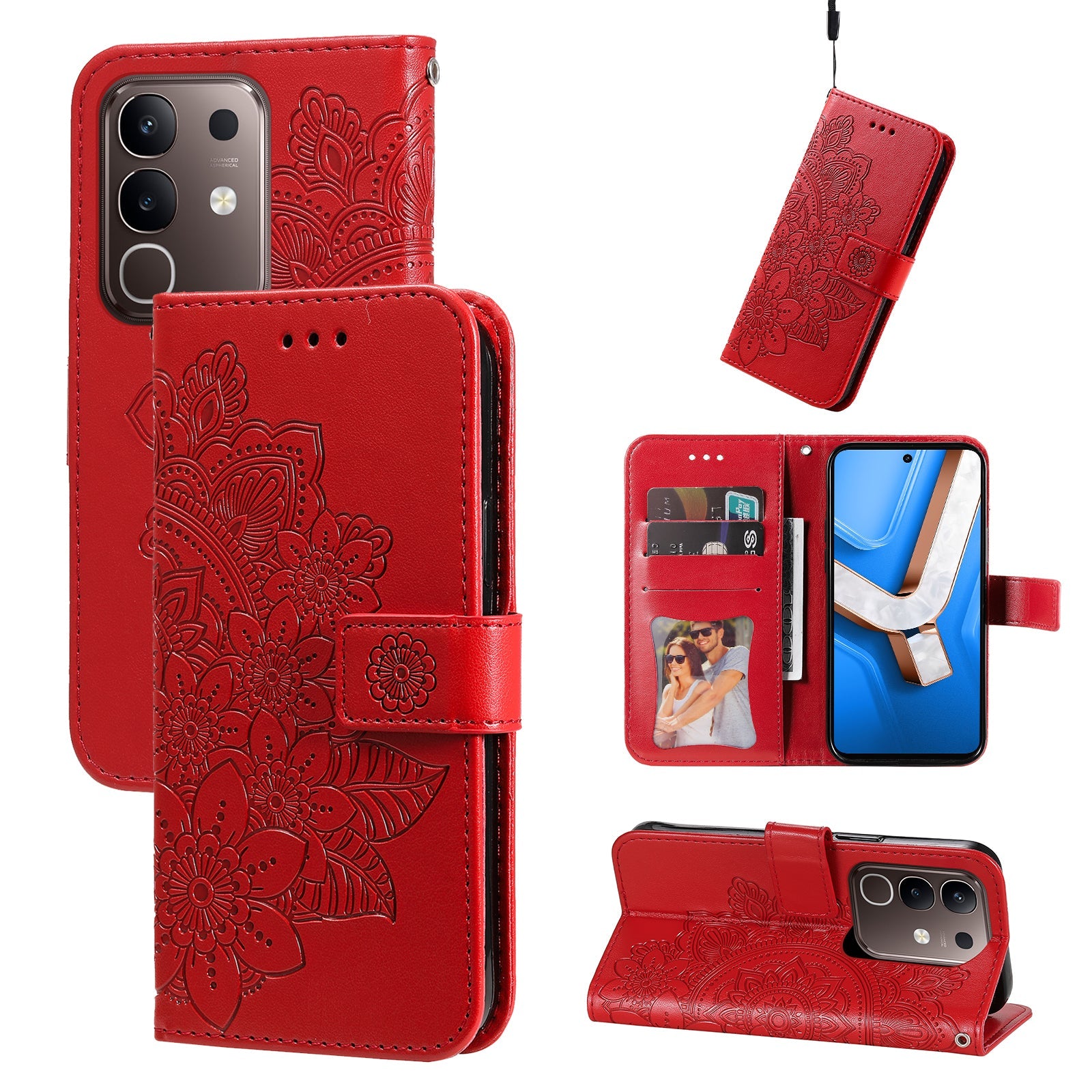 For vivo Y29 4G Case Floral Pattern PU Leather Wallet Stand Phone Cover - Red