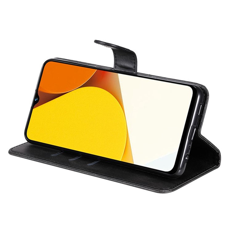For vivo Y35 4G (2022) / Y22s 4G / Y22 4G Zipper Pocket Calf Texture PU Leather Magnetic Clasp Case Wallet Stand Phone Cover - Black