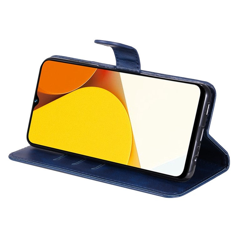 For vivo Y35 4G (2022) / Y22s 4G / Y22 4G Zipper Pocket Calf Texture PU Leather Magnetic Clasp Case Wallet Stand Phone Cover - Blue