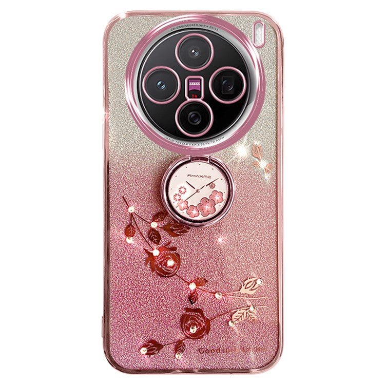 KADEM For vivo X200 5G Case Ring Kickstand TPU Flowers Phone Cover Gradient Glitter - Rose Gold