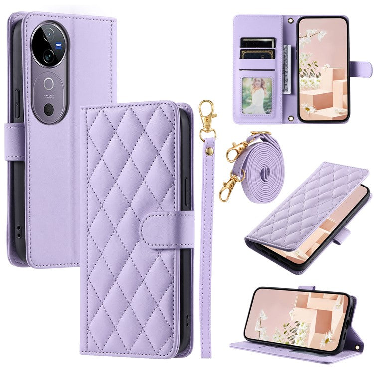 Leather Case for vivo T3 Ultra 5G / V40 Pro 5G / V40 5G / S19 Pro 5G Wallet Rhombus Grid Phone Cover - Purple