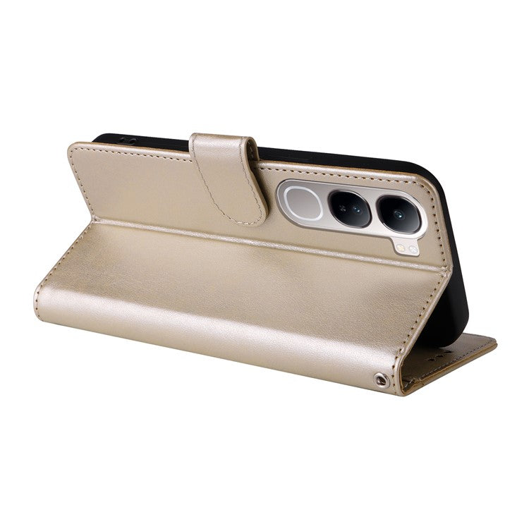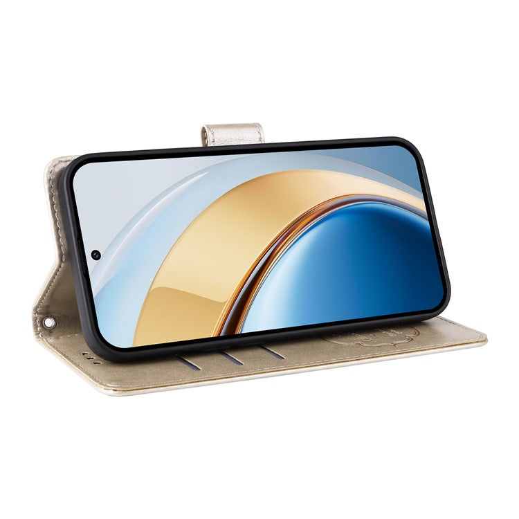 Leather Phone Case for vivo Y300 5G / Y200 5G / V40 Lite (Indonesia) 5G / 4G Butterfly Floral Imprint Wallet Stand Cover - Gold