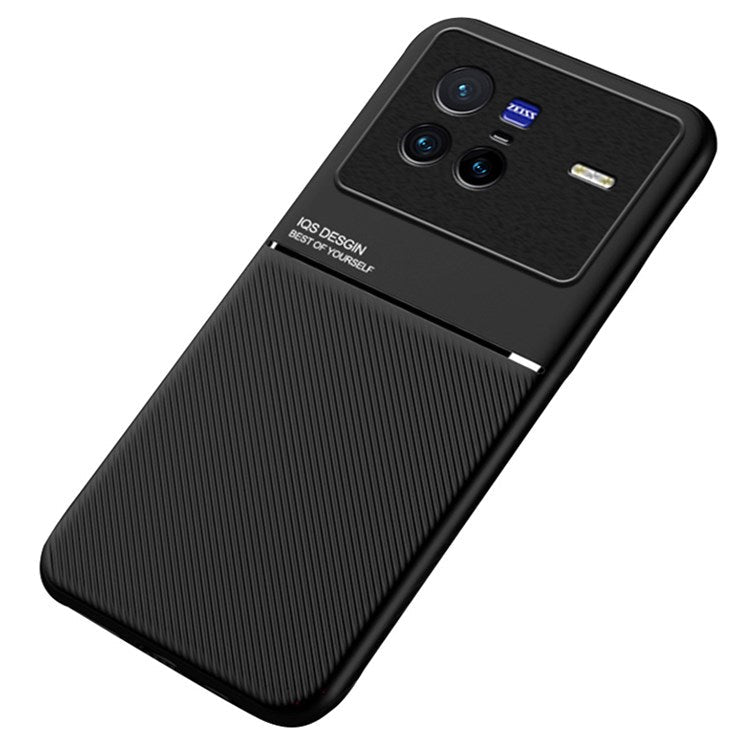 Protective Phone Case for vivo X80 Shockproof Slim Case Lines Imprinted PU Leather TPU Cover with Built-in Metal Sheet - Black