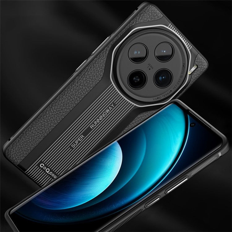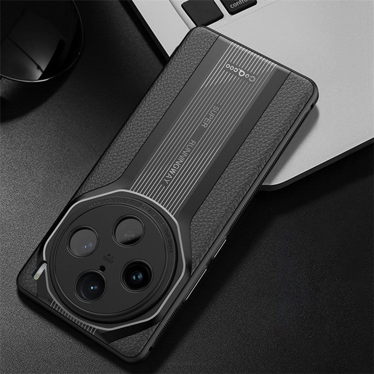 Q.COO Super Running Series For vivo X100 5G Case PU Leather+Acrylic+TPU Shock-Absorbent Back Phone Cover - Black