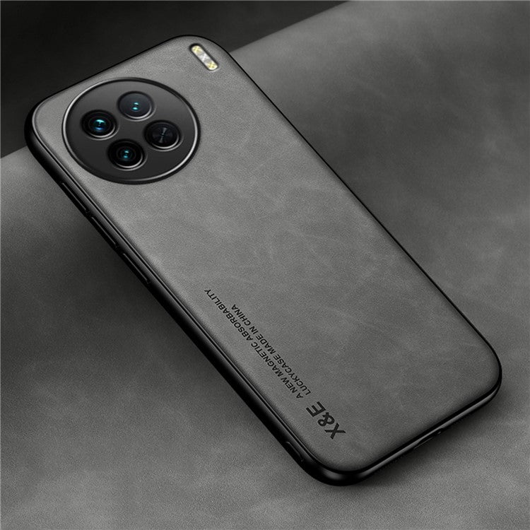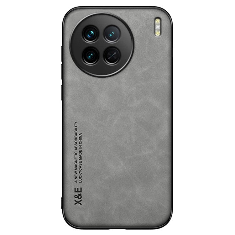 X&E For vivo X90 5G PU Leather Coated TPU+PC Case Skin-touch Protective Phone Cover with Car Mount Metal Sheet - Light Grey