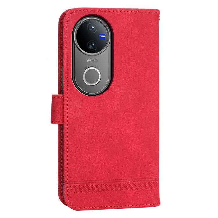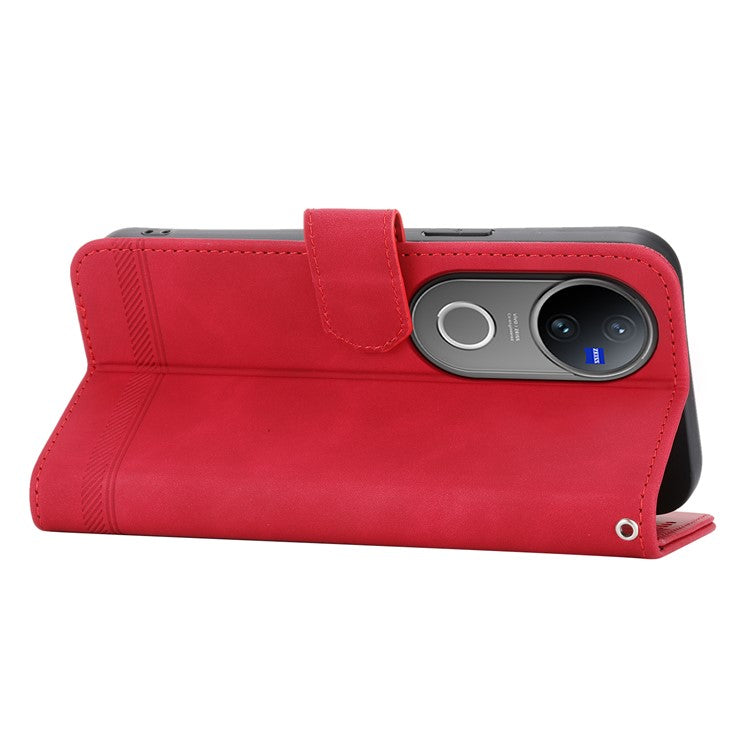 DIERFENG DF-03 For vivo V50 5G Leather Case Lines Imprint Wallet Phone Cover - Red