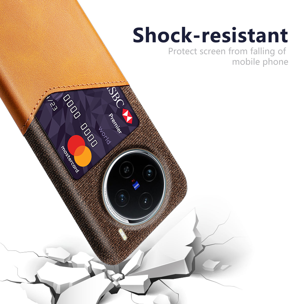 For vivo X100 5G Phone Case PU Leather+PC Card Slot Protective Cover - Orange