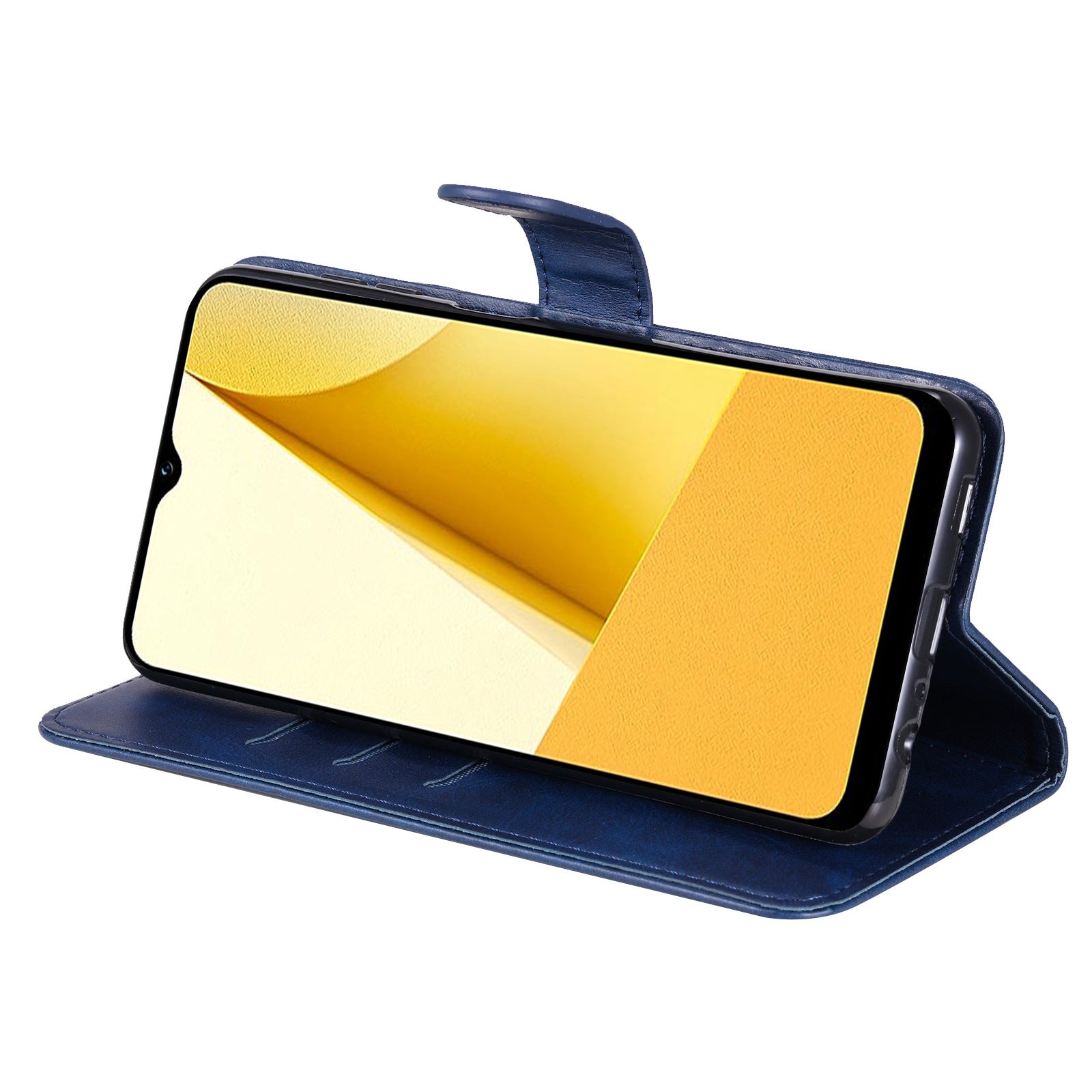 For vivo Y02s 4G / Y16 4G Zipper Pocket Phone Case Calf Texture PU Leather Wallet Folio Flip Stand Anti-drop Cover - Blue