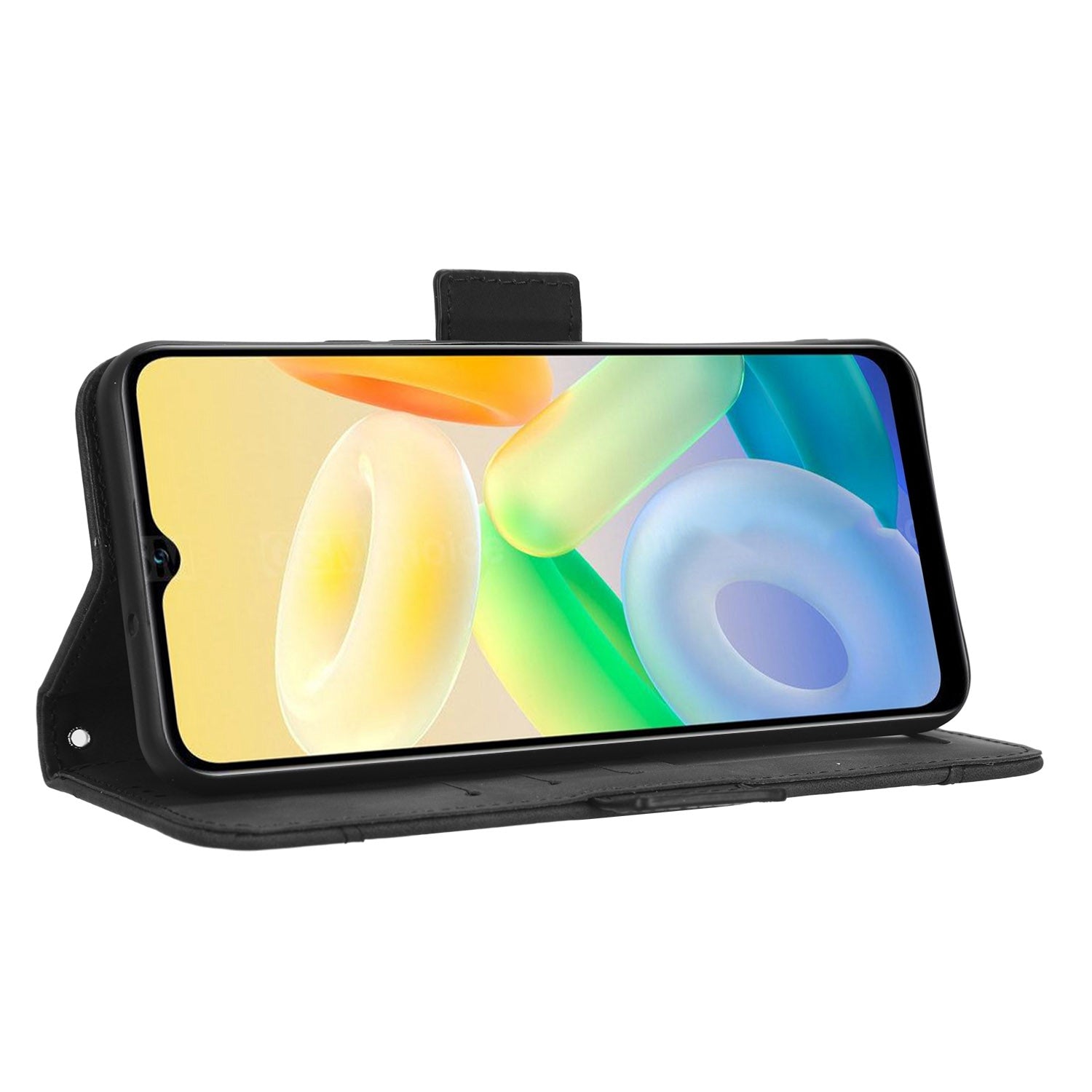 For vivo Y16 4G / Y02s 4G / Y35 5G / Y35m 5G / Y53t 5G / Y56 5G / iQOO Z7i / T2x (India) 5G Multiple Card Slots PU Leather Wallet Stand Cover Dual Magnetic Clasp Phone Shockproof Case - Black