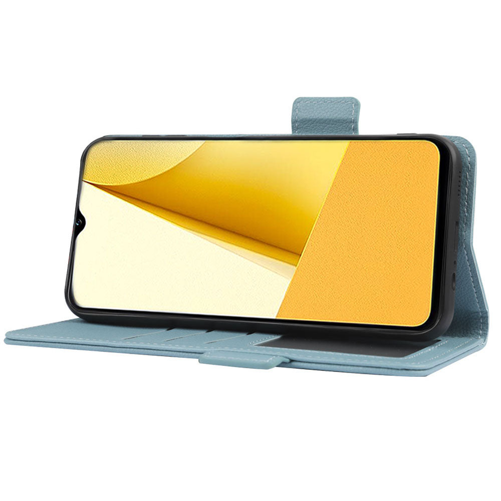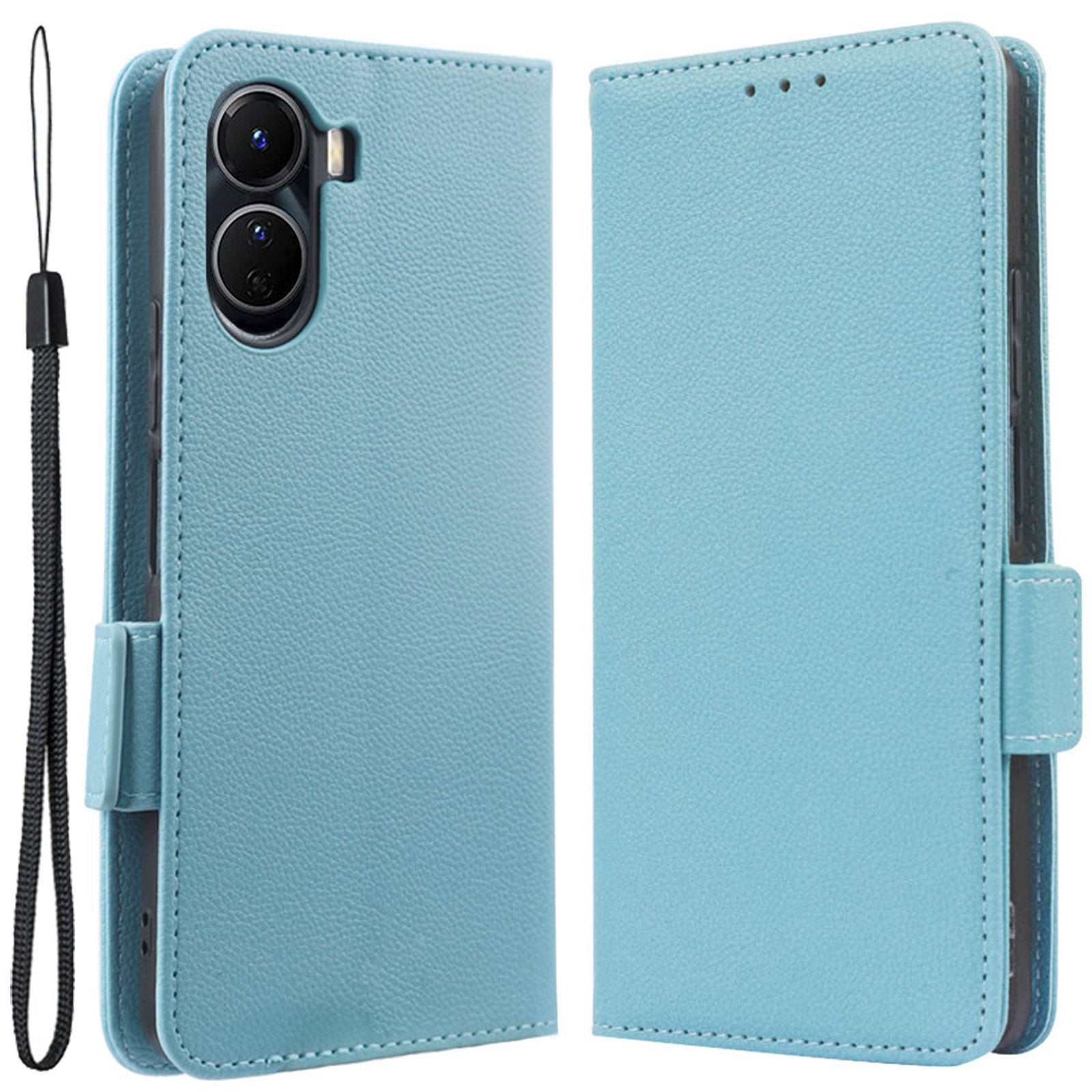 For vivo Y16 4G / Y02s 4G / Y35 5G / Y35m 5G / Y53t 5G / Y56 5G / iQOO Z7i / T2x (India) 5G Phone Case PU Leather Shockproof Flip Stand Magnetic Protective Cover Litchi Texture Wallet with Strap - Baby Blue