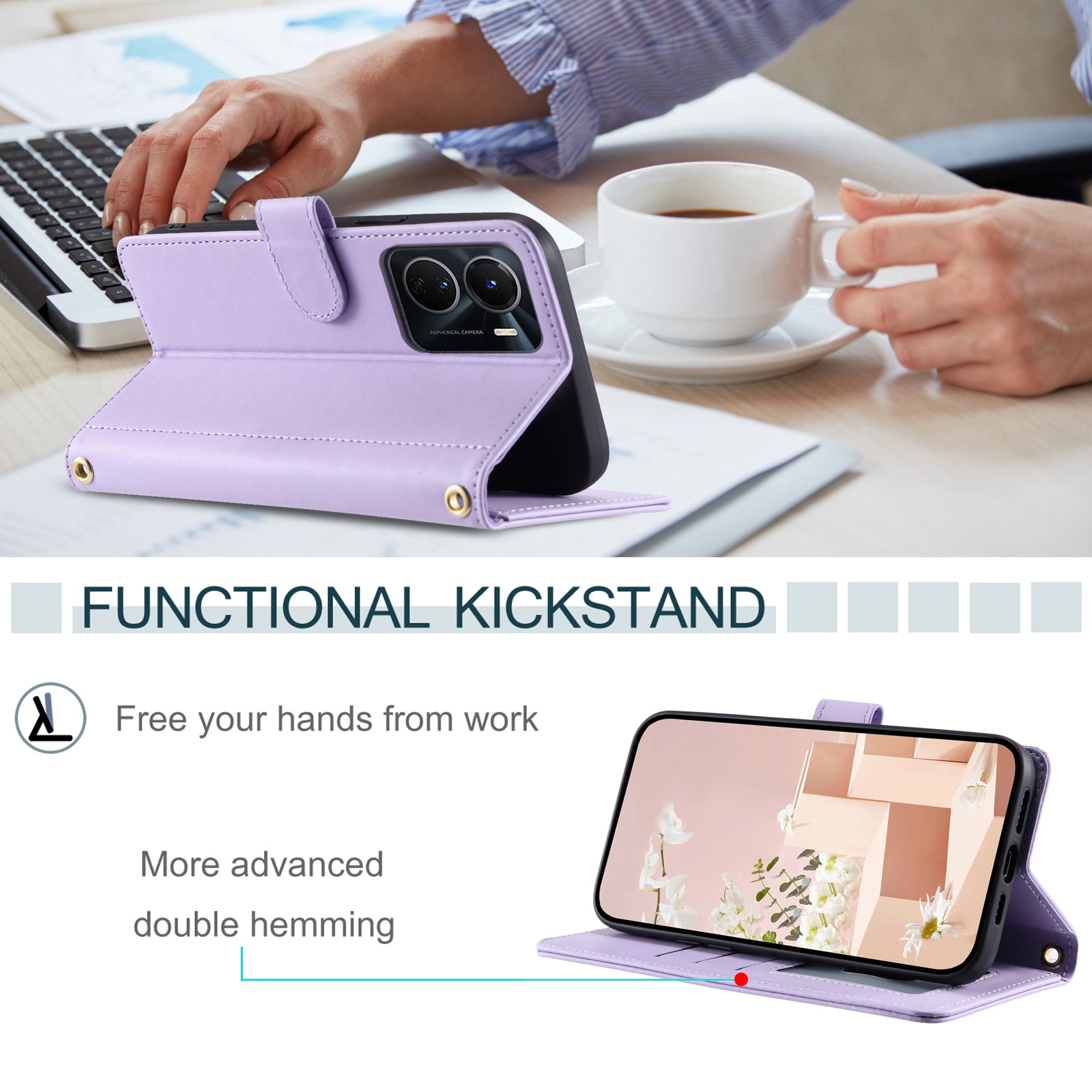 For vivo Y16 4G / Y56 5G / Y02s 4G Case Wallet Stand Flip Leather Phone Cover - Purple