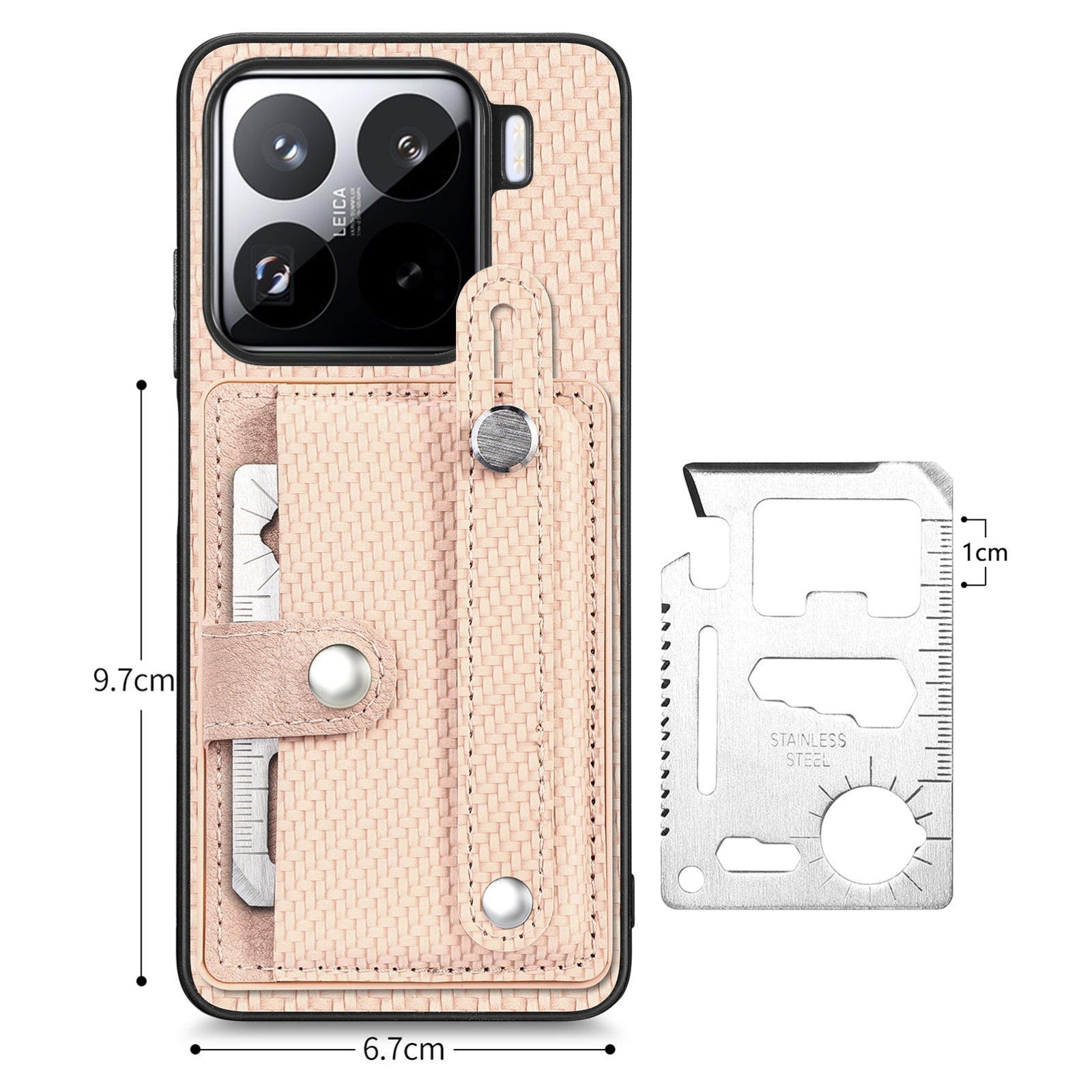 For Xiaomi 15 Wristband Kickstand Card Wallet Back Phone Case with Tool Knife(Khaki)