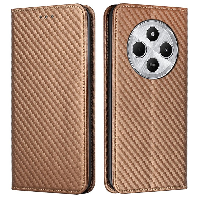 For Xiaomi Poco C75 4G / Redmi 14R 5G / 14C 4G Case Leather Flip Phone Cover Stand Strong Magnetic Closure - Brown