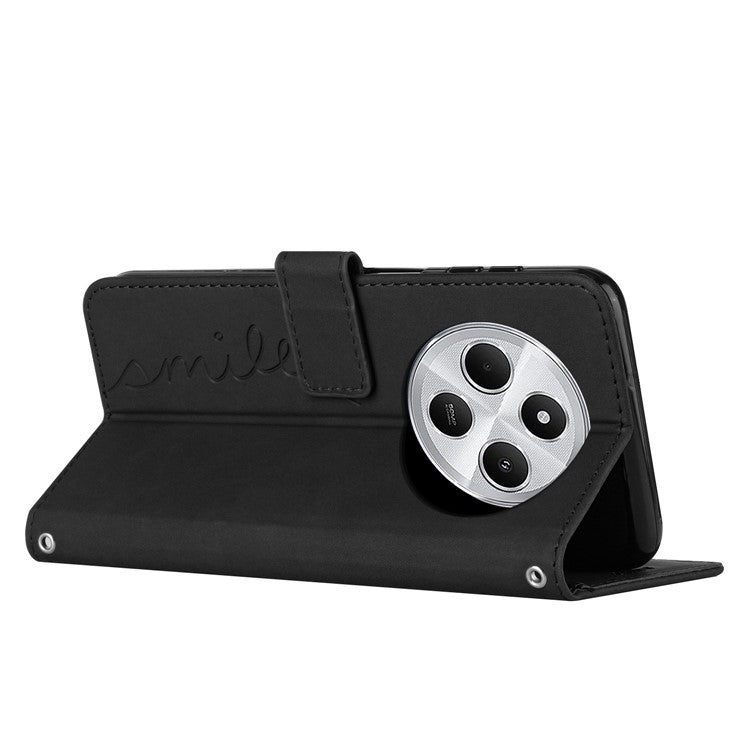 For Xiaomi Poco C75 4G / Redmi 14R 5G / 14C 4G Case Viewing Stand PU Leather Phone Cover Imprinted Pattern - Black