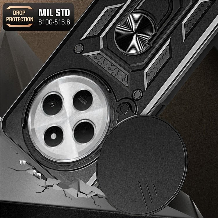 For Xiaomi Poco C75 4G / Redmi 14R 5G / 14C 4G Case with Slide Camera Lid PC+TPU Kickstand Phone Cover - Black
