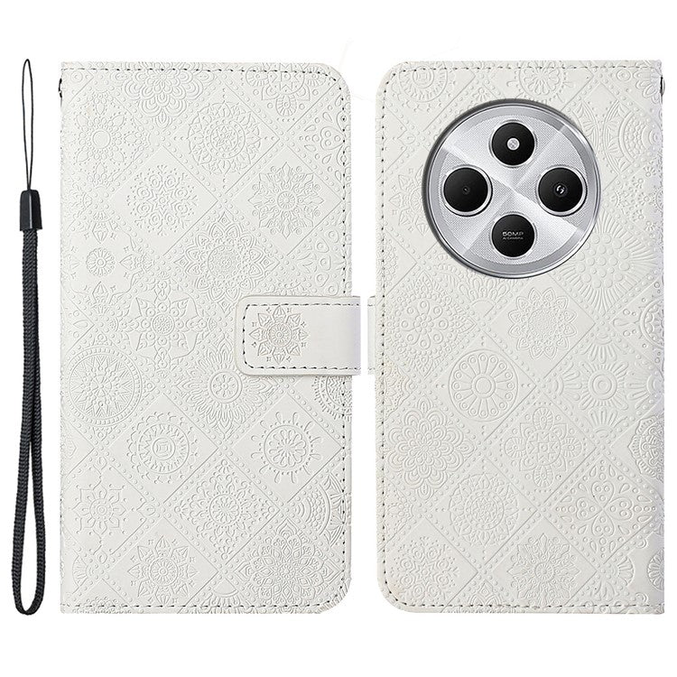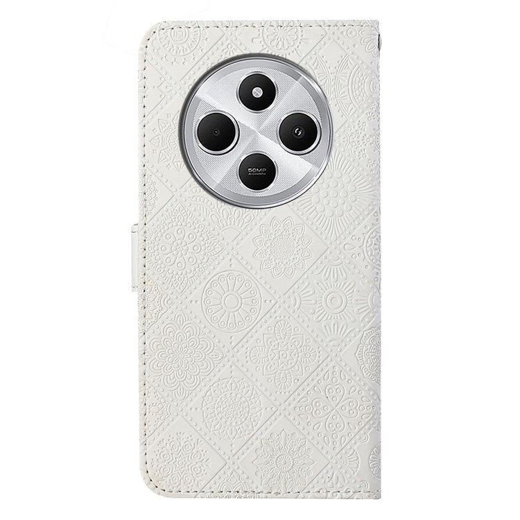 For Xiaomi Poco C75 4G / Redmi 14R 5G / 14C 4G Leather Case Ethnic Style Phone Wallet Cover with Strap - White