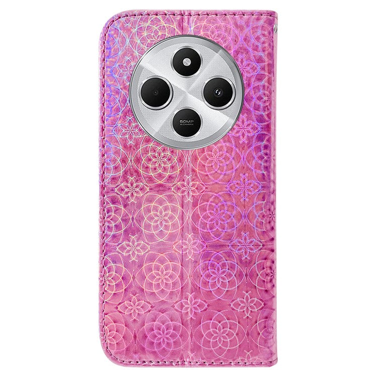 For Xiaomi Poco C75 4G / Redmi 14R 5G / 14C 4G Stand Case Dazzling Flower Leather Phone Cover - Pink