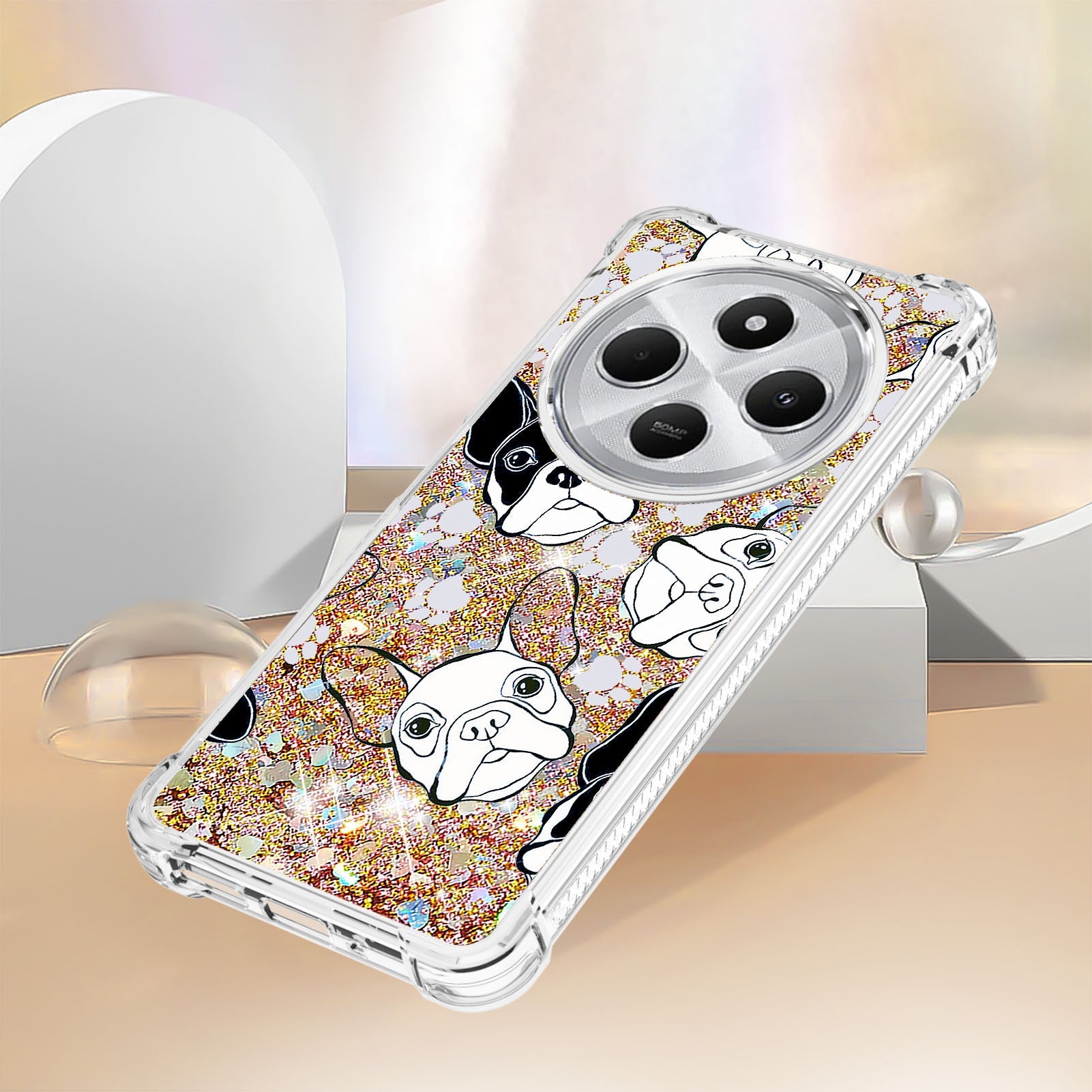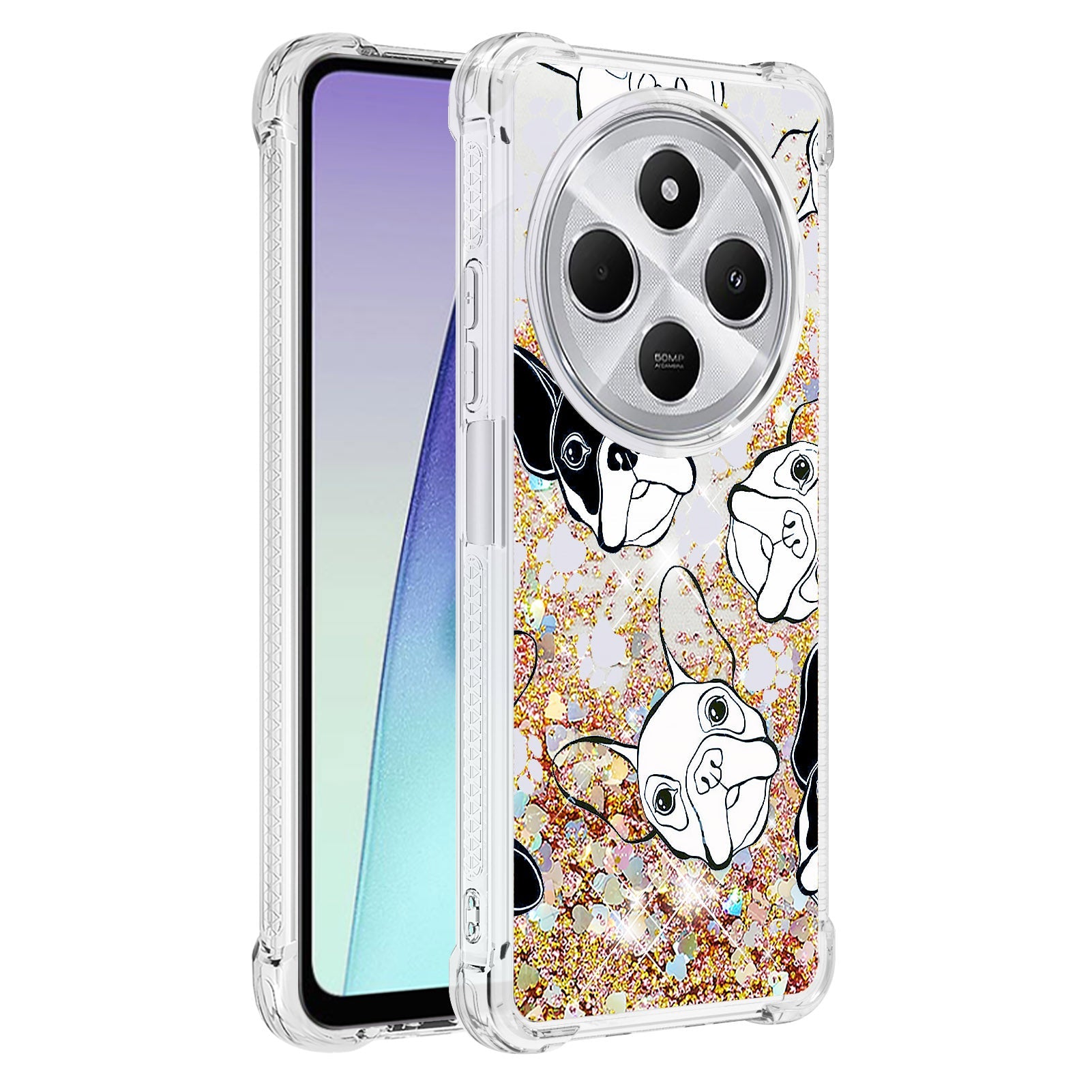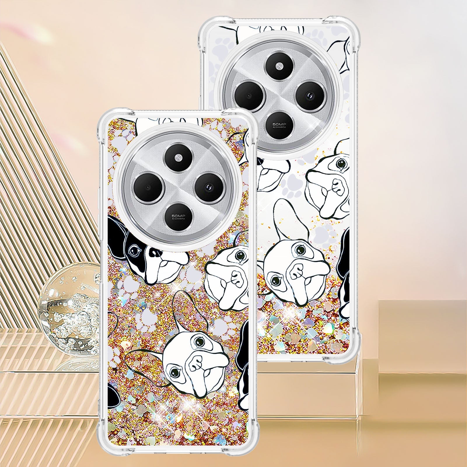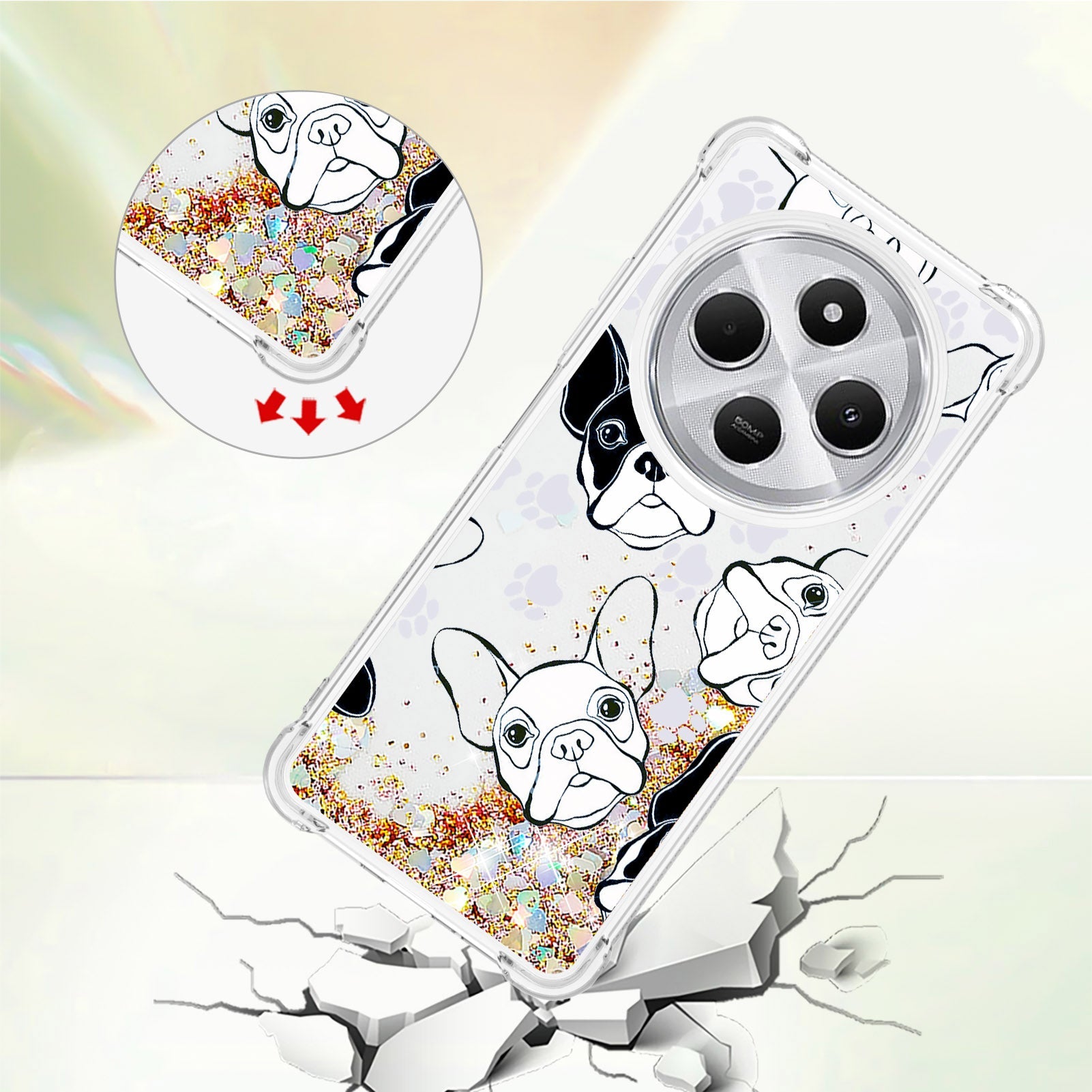 For Xiaomi Poco C75 4G / Xiaomi Redmi 14R 5G / Xiaomi Redmi 14C 4G Case YB Quicksand Series-2 Liquid Quicksand Pattern TPU Phone Cover - Black+White Puppy
