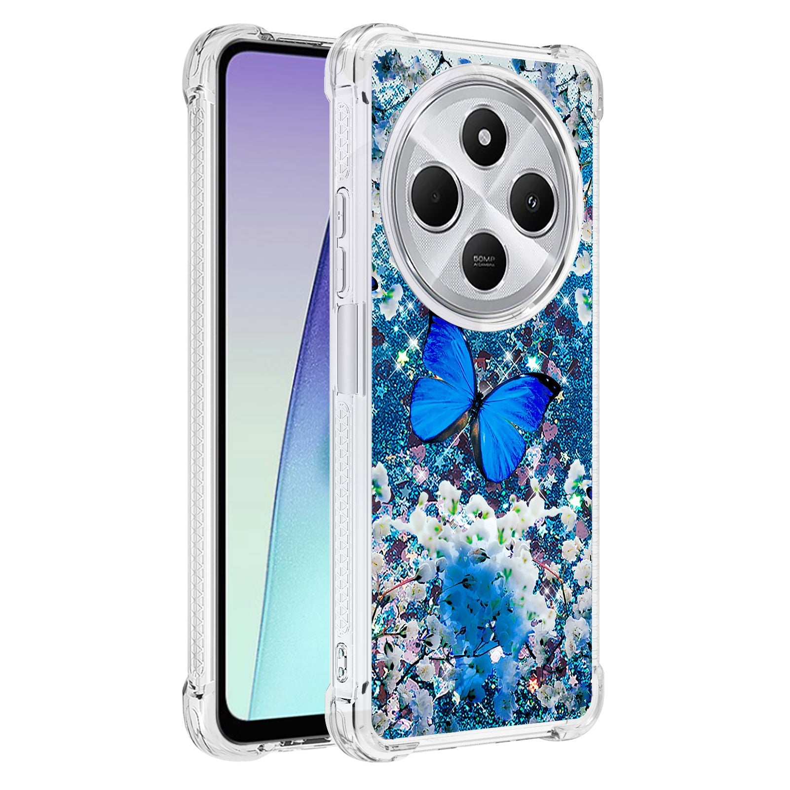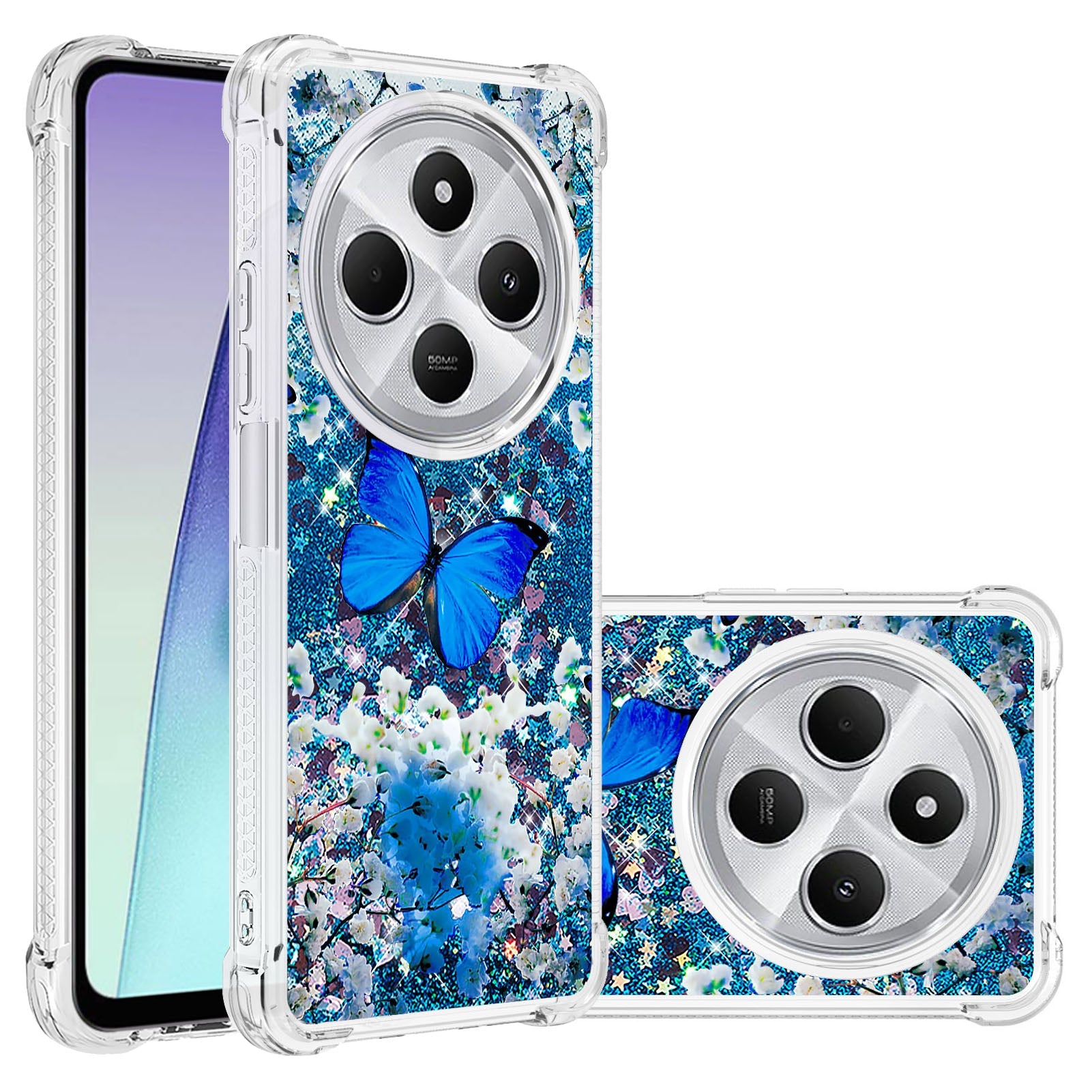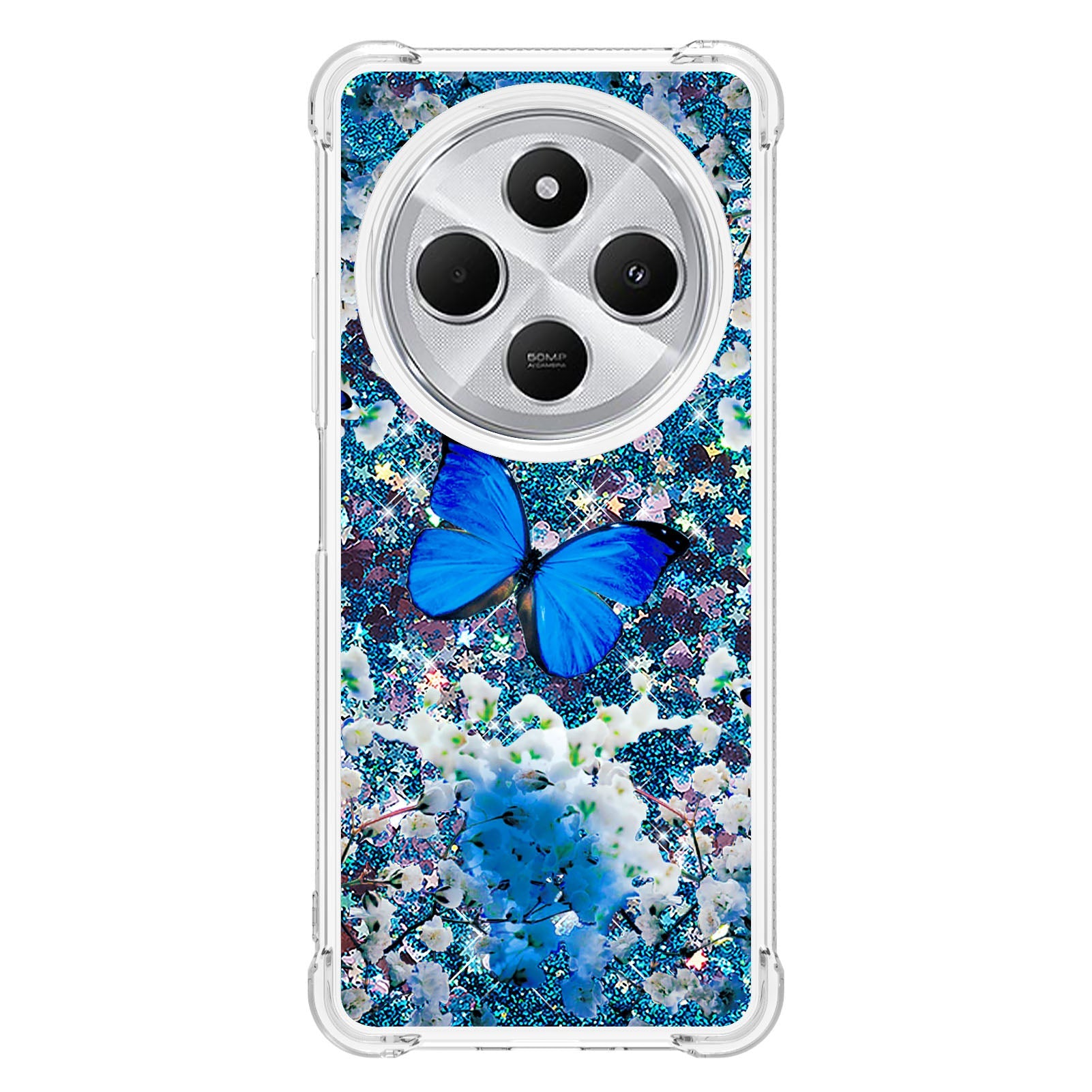 For Xiaomi Poco C75 4G / Xiaomi Redmi 14R 5G / Xiaomi Redmi 14C 4G Case YB Quicksand Series-2 Liquid Quicksand Pattern TPU Phone Cover - Blue Butterfly