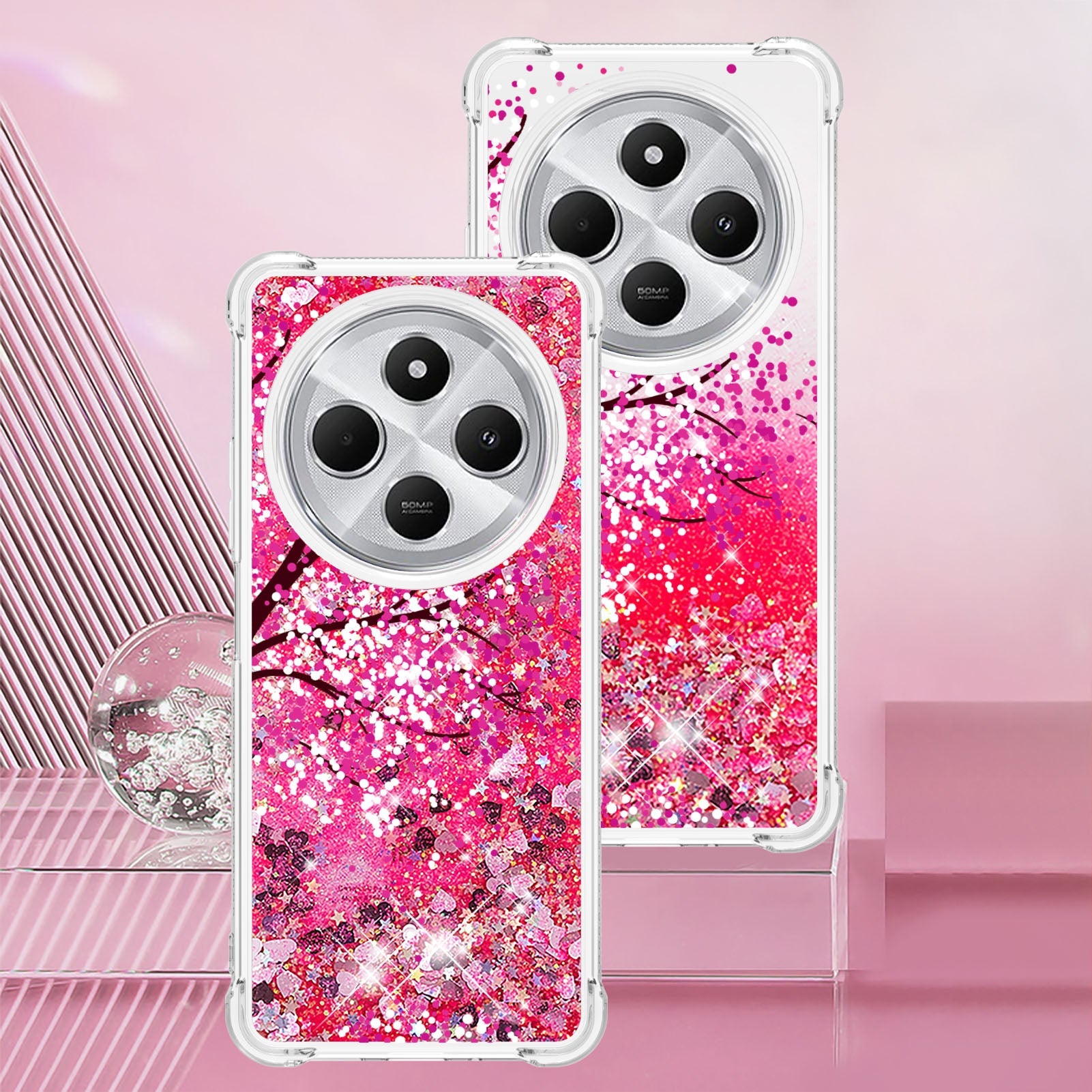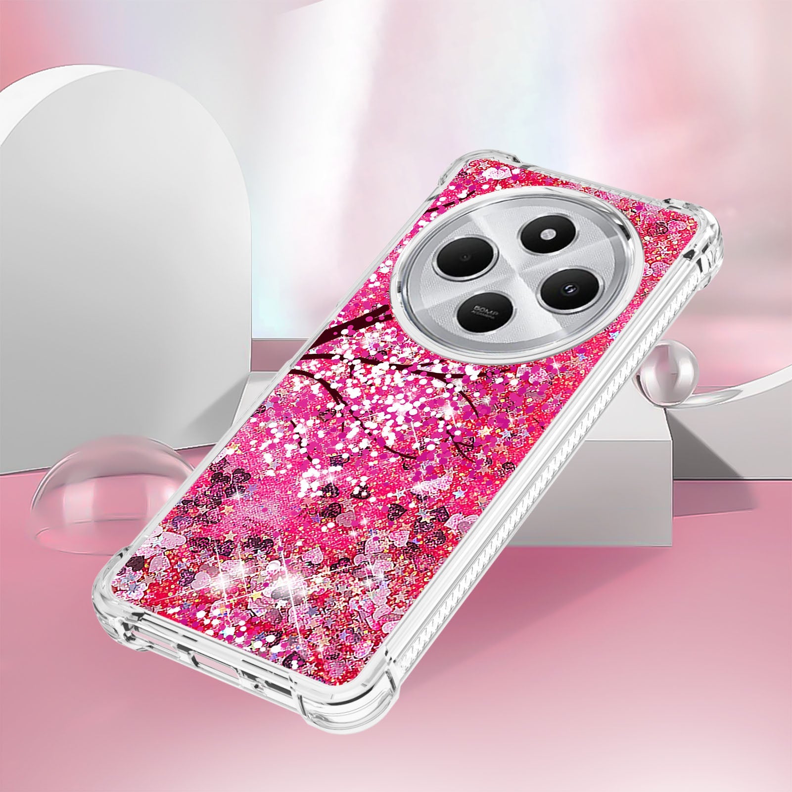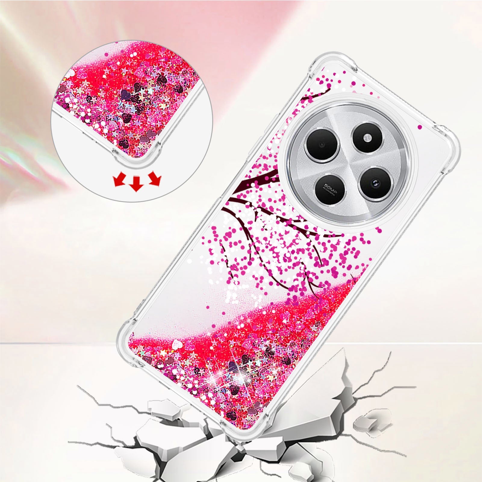For Xiaomi Poco C75 4G / Xiaomi Redmi 14R 5G / Xiaomi Redmi 14C 4G Case YB Quicksand Series-2 Liquid Quicksand Pattern TPU Phone Cover - Cherry Blossom