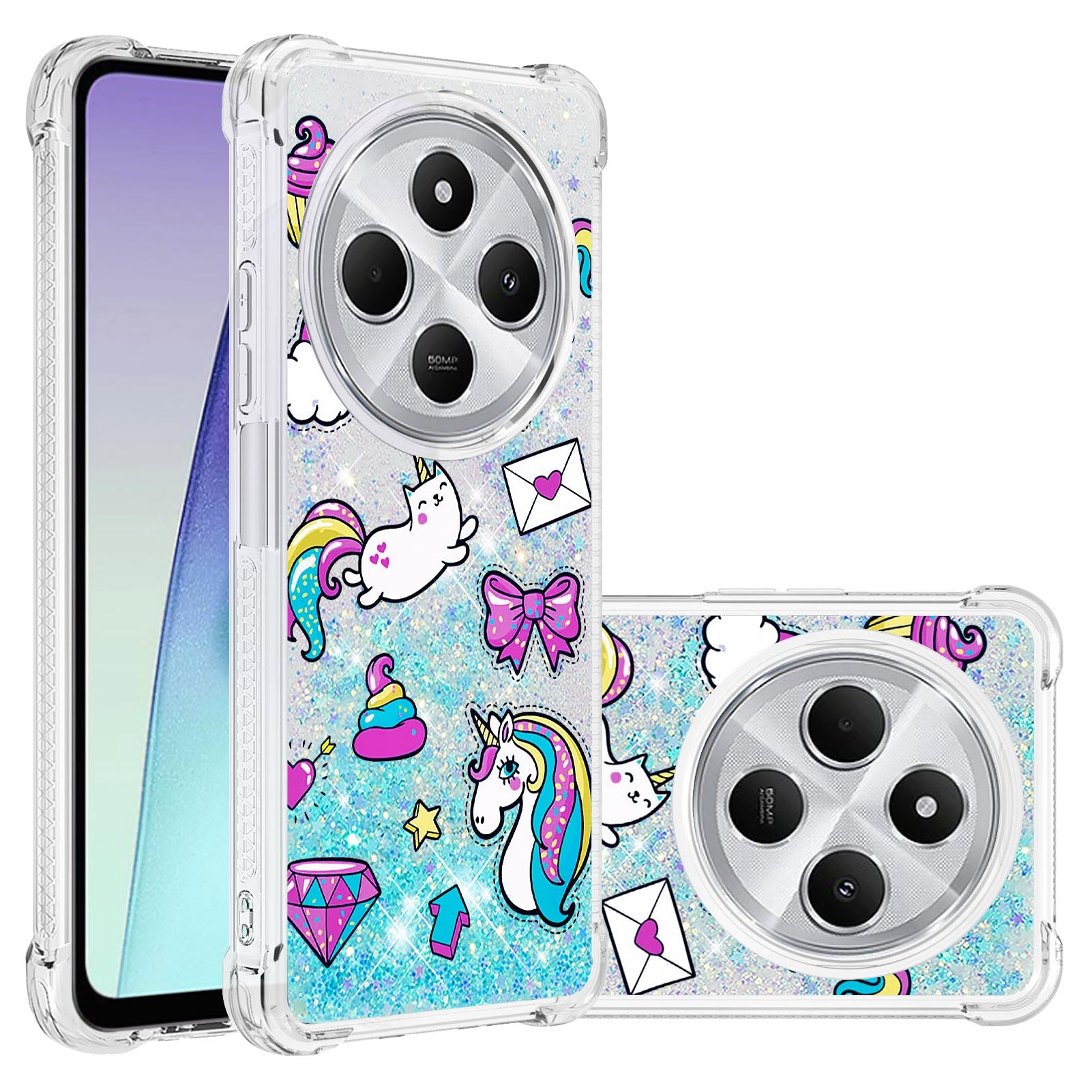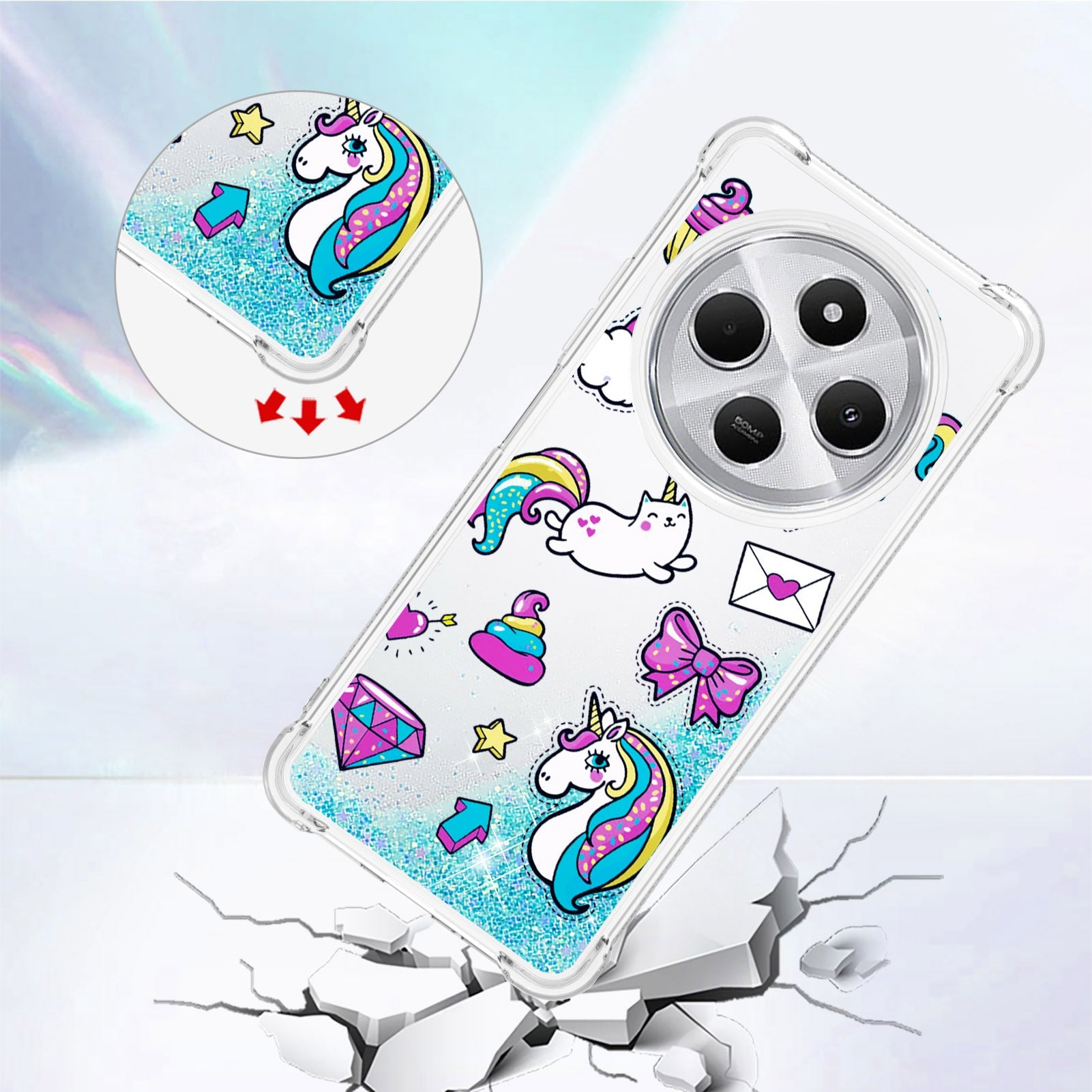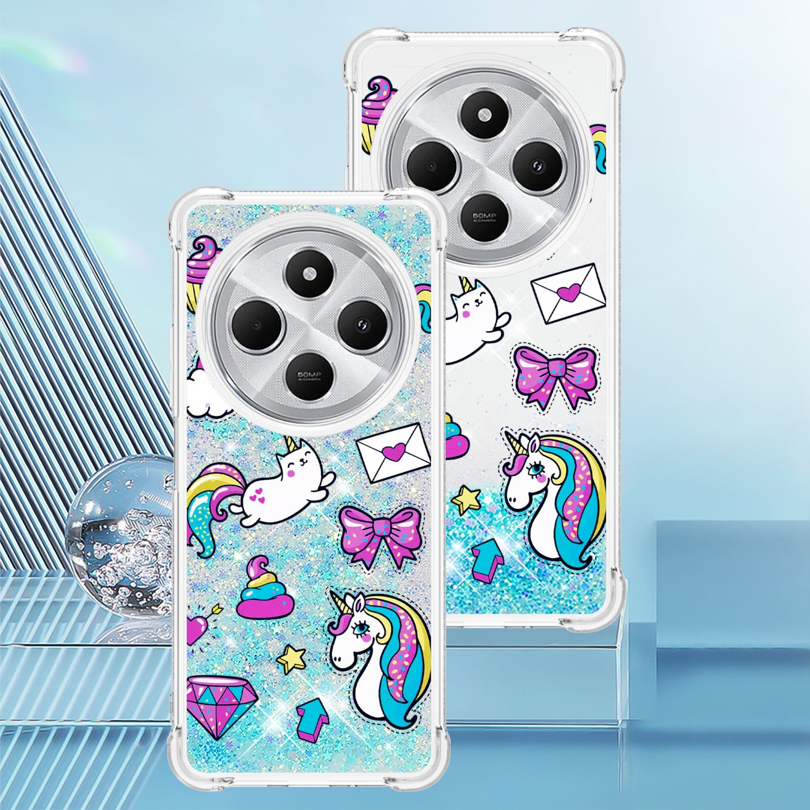 For Xiaomi Poco C75 4G / Xiaomi Redmi 14R 5G / Xiaomi Redmi 14C 4G Case YB Quicksand Series-2 Liquid Quicksand Pattern TPU Phone Cover - Horse and Diamond