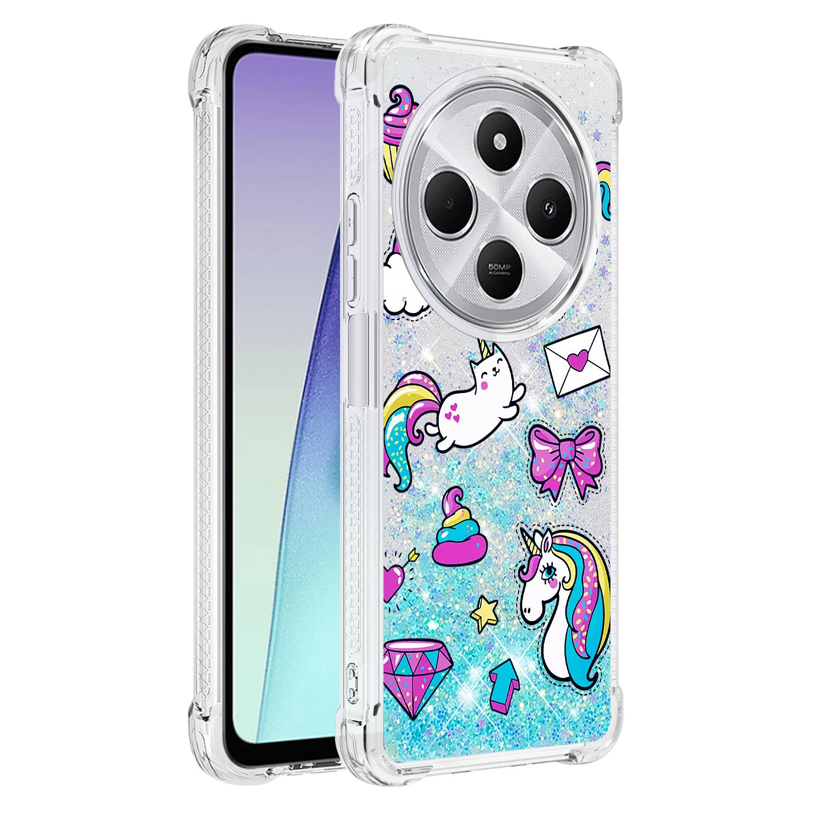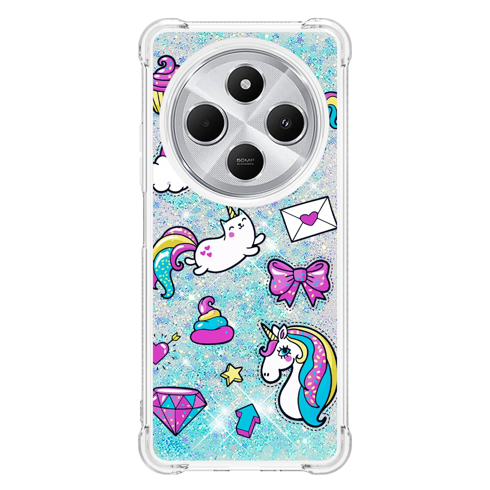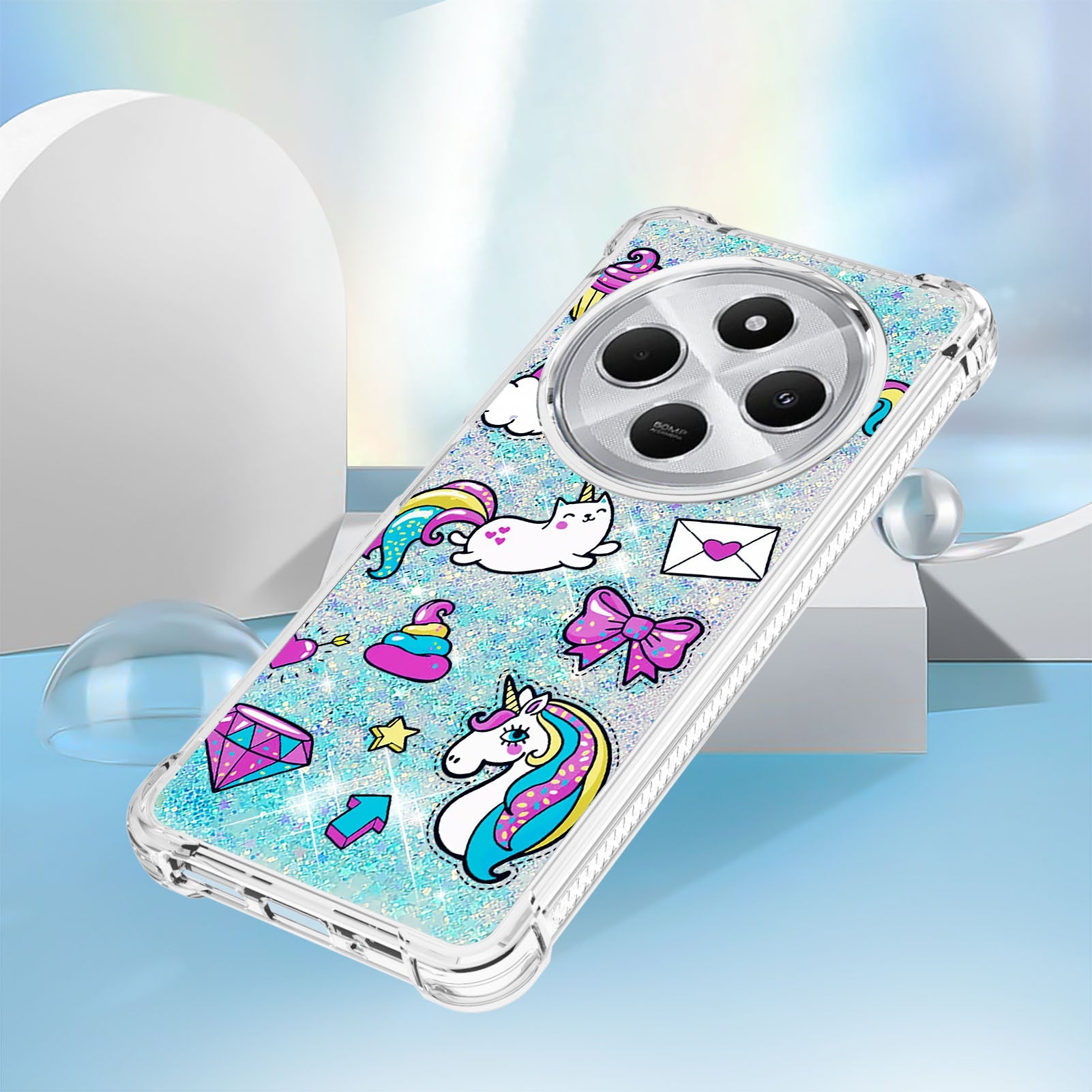 For Xiaomi Poco C75 4G / Xiaomi Redmi 14R 5G / Xiaomi Redmi 14C 4G Case YB Quicksand Series-2 Liquid Quicksand Pattern TPU Phone Cover - Horse and Diamond