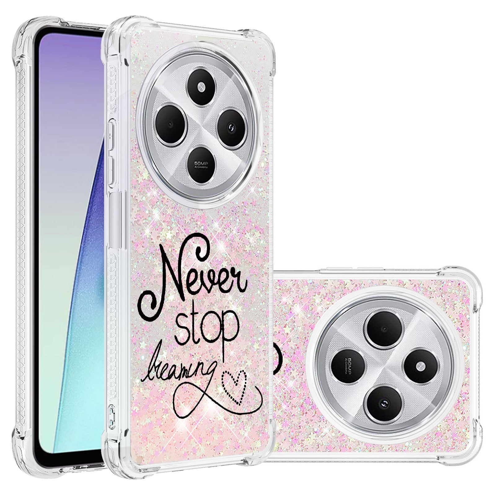 For Xiaomi Poco C75 4G / Xiaomi Redmi 14R 5G / Xiaomi Redmi 14C 4G Case YB Quicksand Series-2 Liquid Quicksand Pattern TPU Phone Cover - Never Stop Dreaming