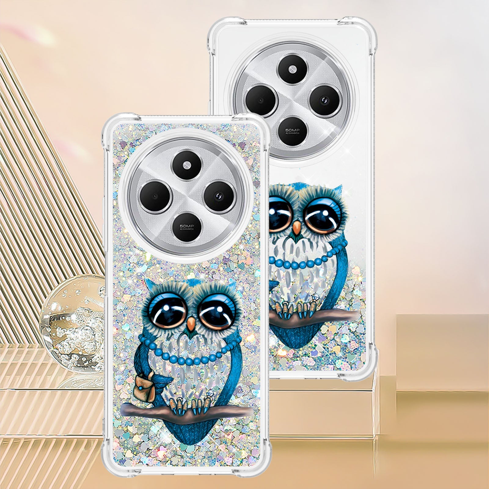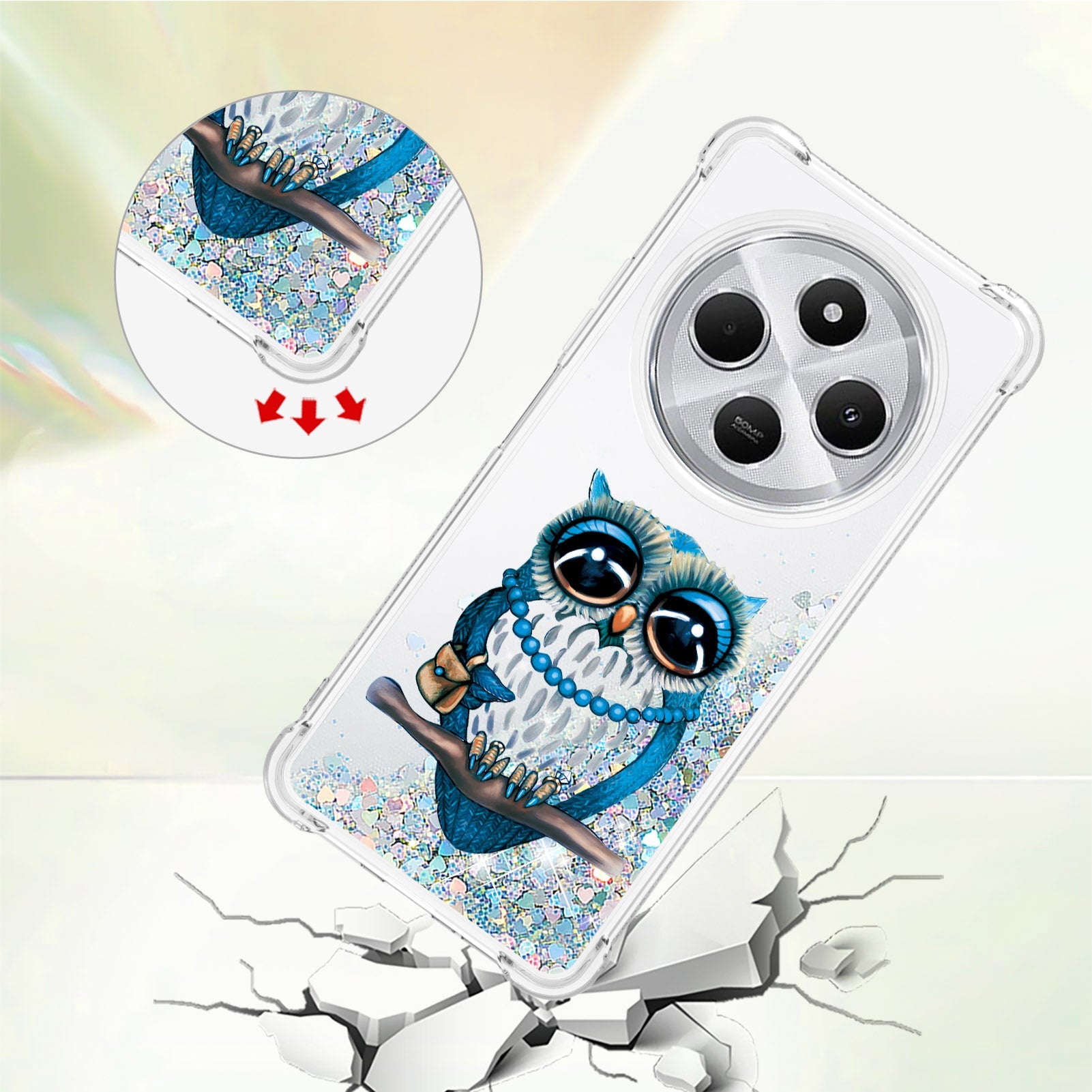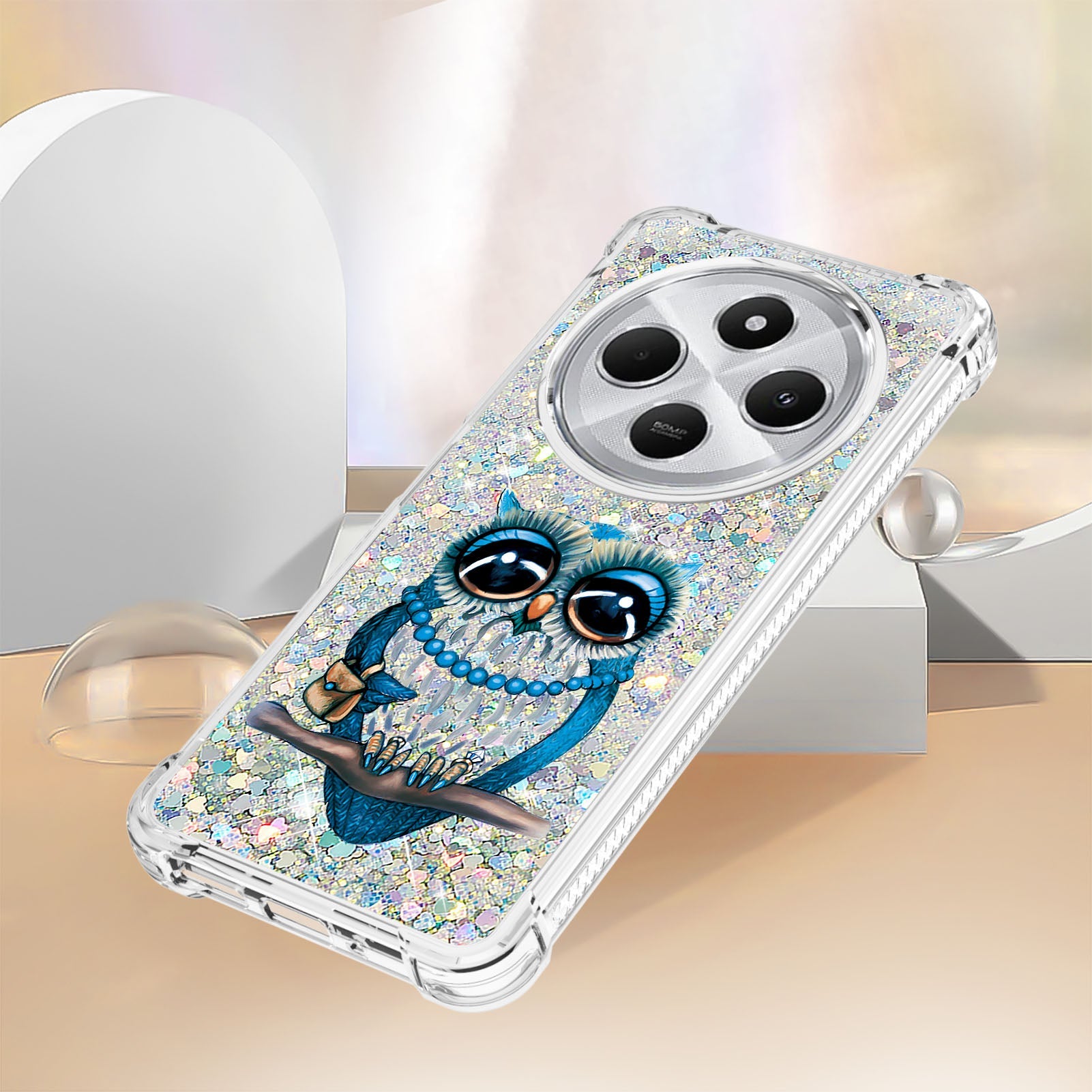 For Xiaomi Poco C75 4G / Xiaomi Redmi 14R 5G / Xiaomi Redmi 14C 4G Case YB Quicksand Series-2  Liquid Quicksand Pattern TPU Phone Cover - Owl