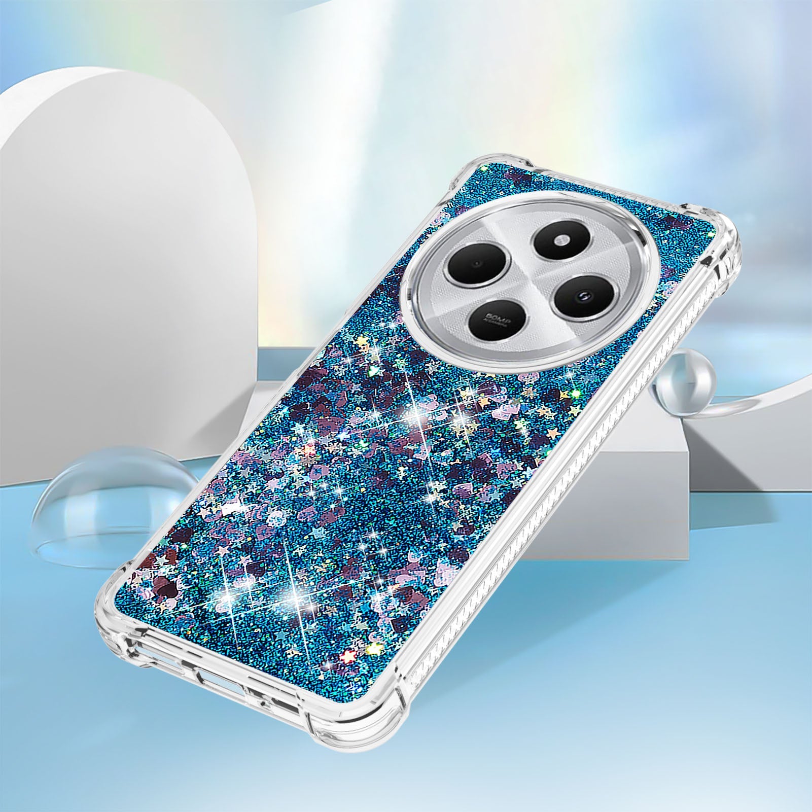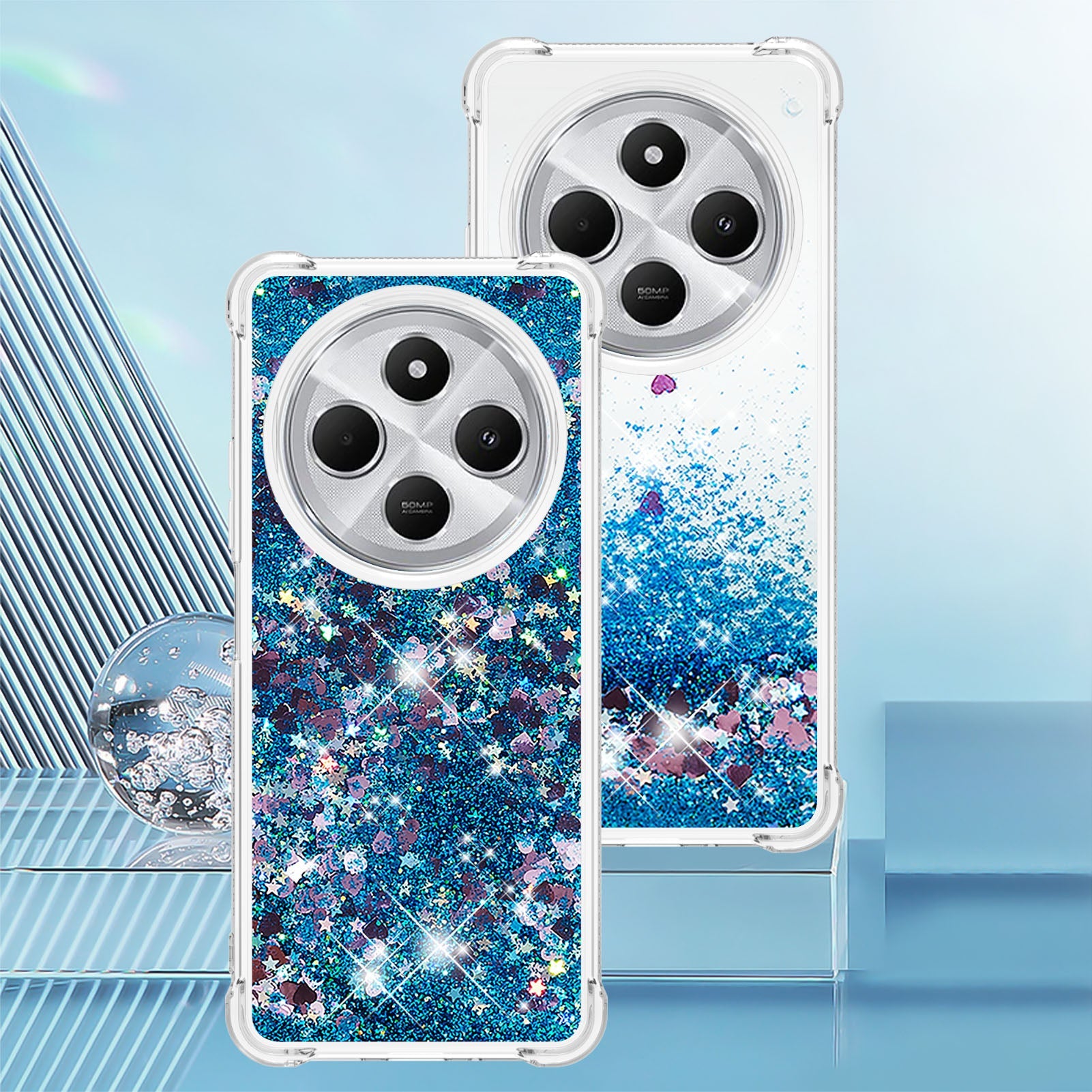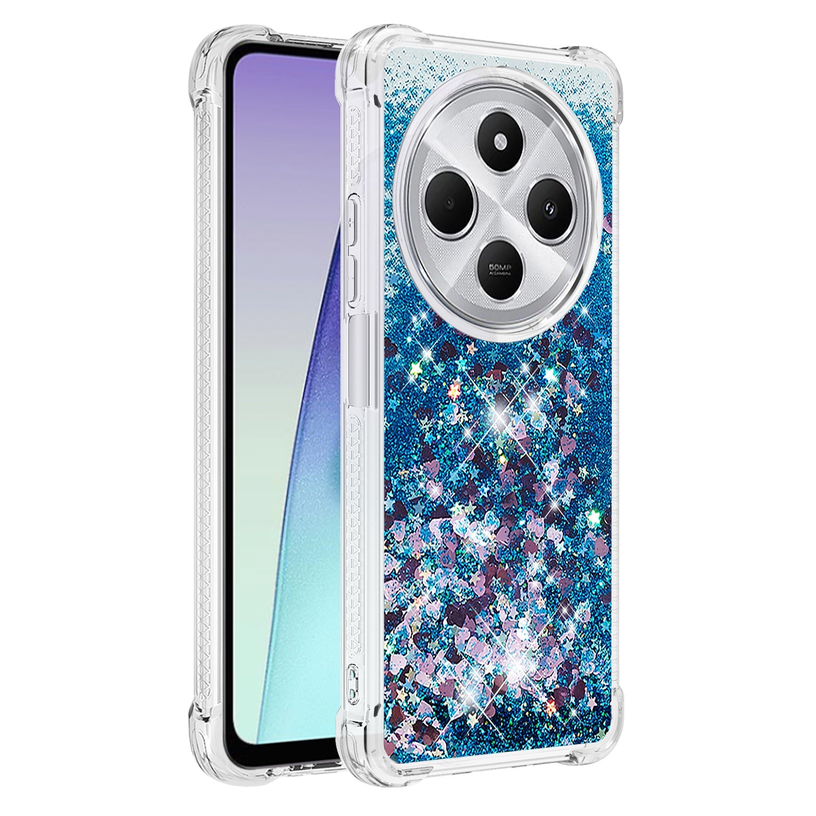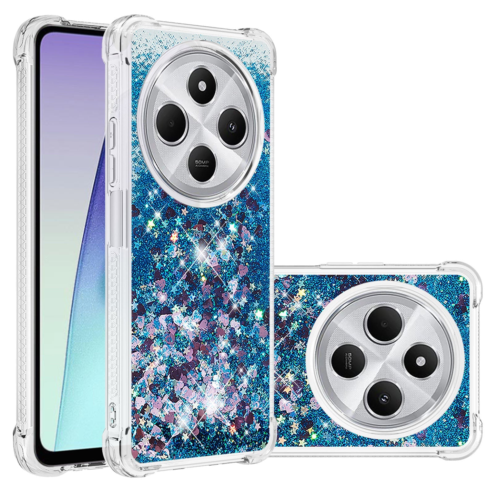 For Xiaomi Redmi 14R 5G / Xiaomi Poco C75 4G / Xiaomi Redmi 14C 4G Case Quicksand Anti-Drop TPU Phone Cover - Blue / Hearts
